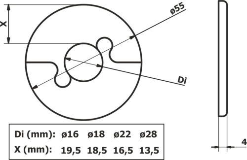 Rosetterne findes i tre forskellige størrelser: Ø16, Ø18 samt Ø22 mm.