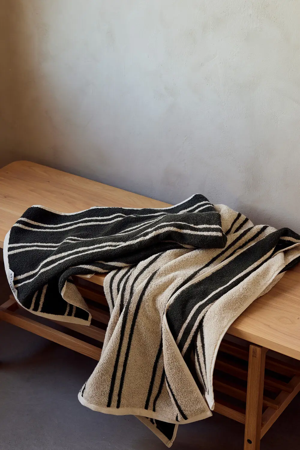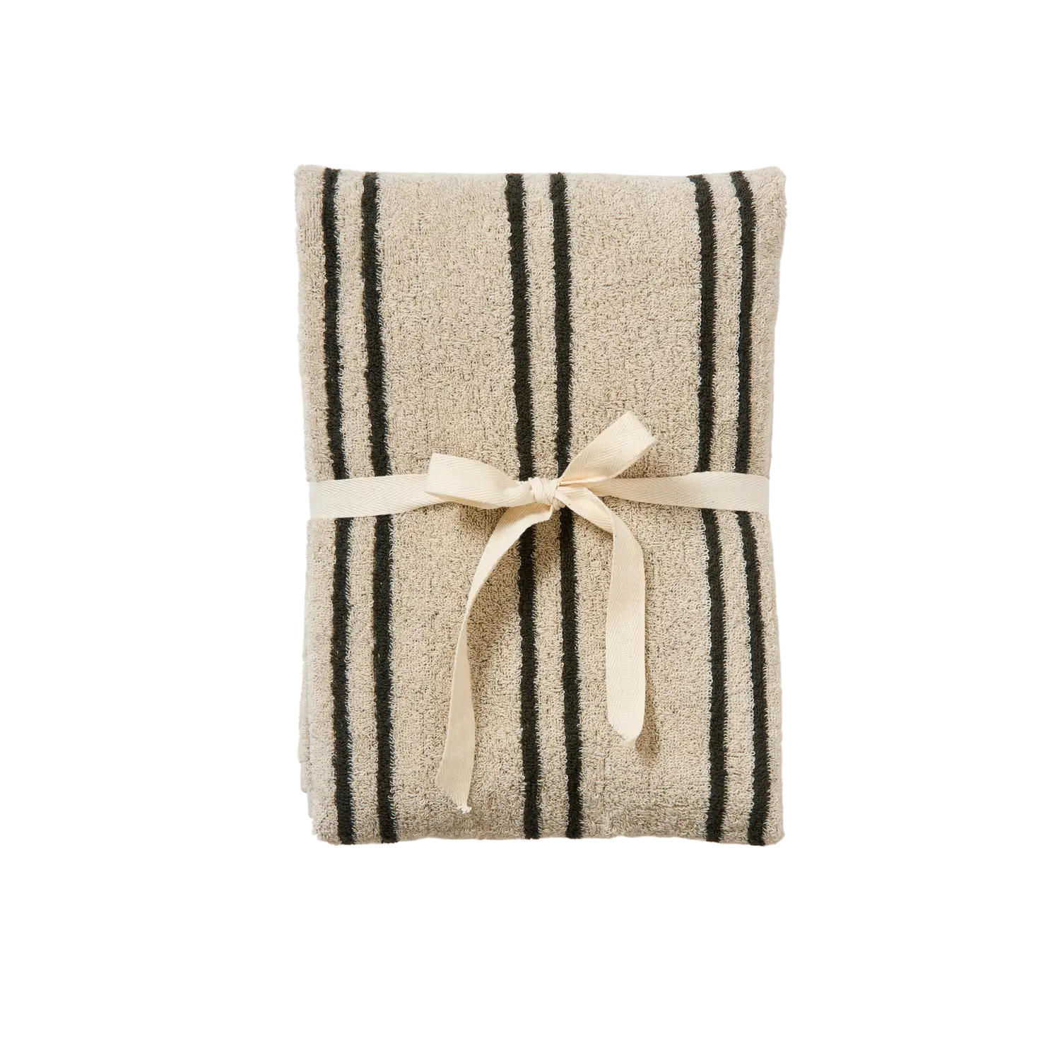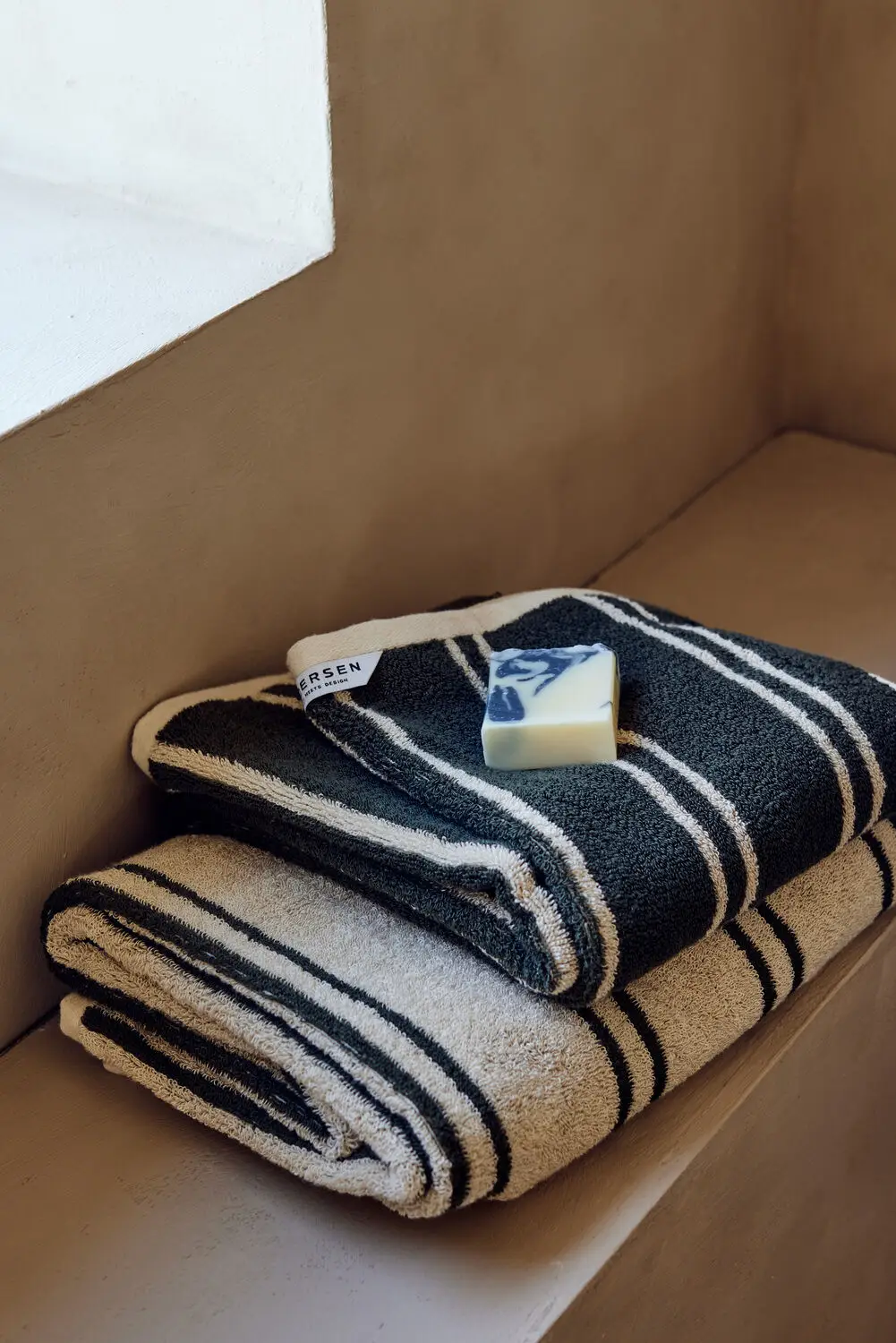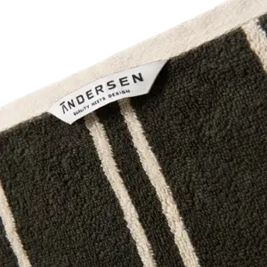 Andersen håndklædet er designet i en blød kvalitet, der opnår et charmerende udtryk med enkle striber og en smuk kombination af mørkegrøn og beige.