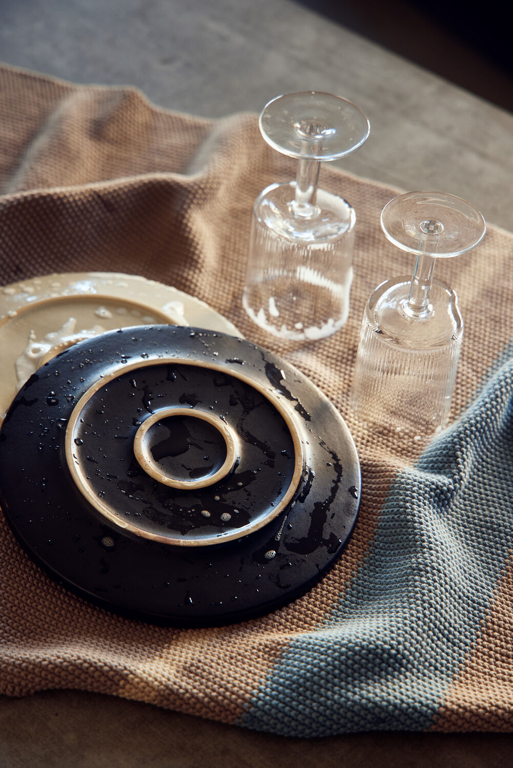 Det strikkede materiale uden mikrofibre eller plastik giver en blød følelse, der er behagelig at bruge hver dag. Den økologiske bomuld er dyrket uden kemikalier, hvilket gør håndklædet skånsomt mod både hud og miljø. Designet af Kira Usbeck kombinerer funktionalitet med en stilren æstetik, der passer ind i moderne køkkener.