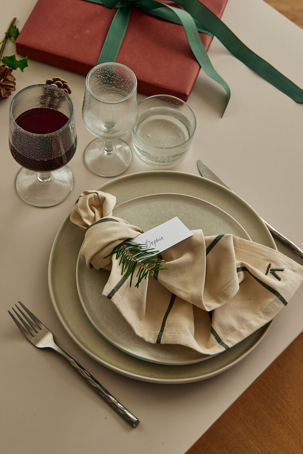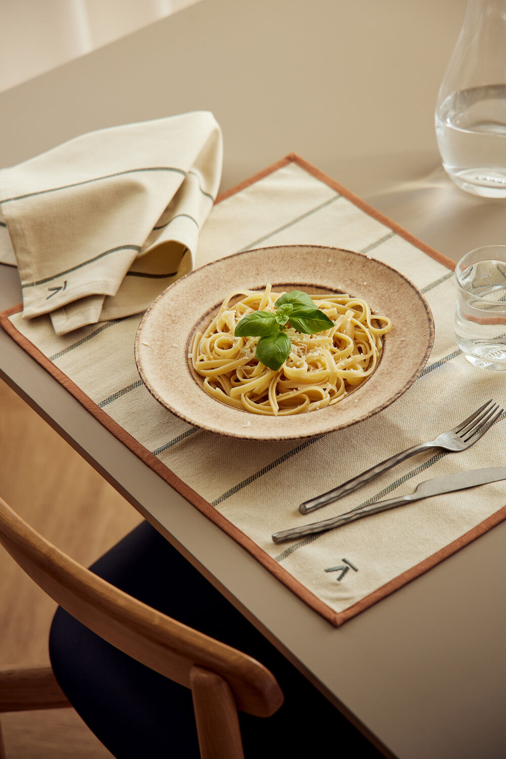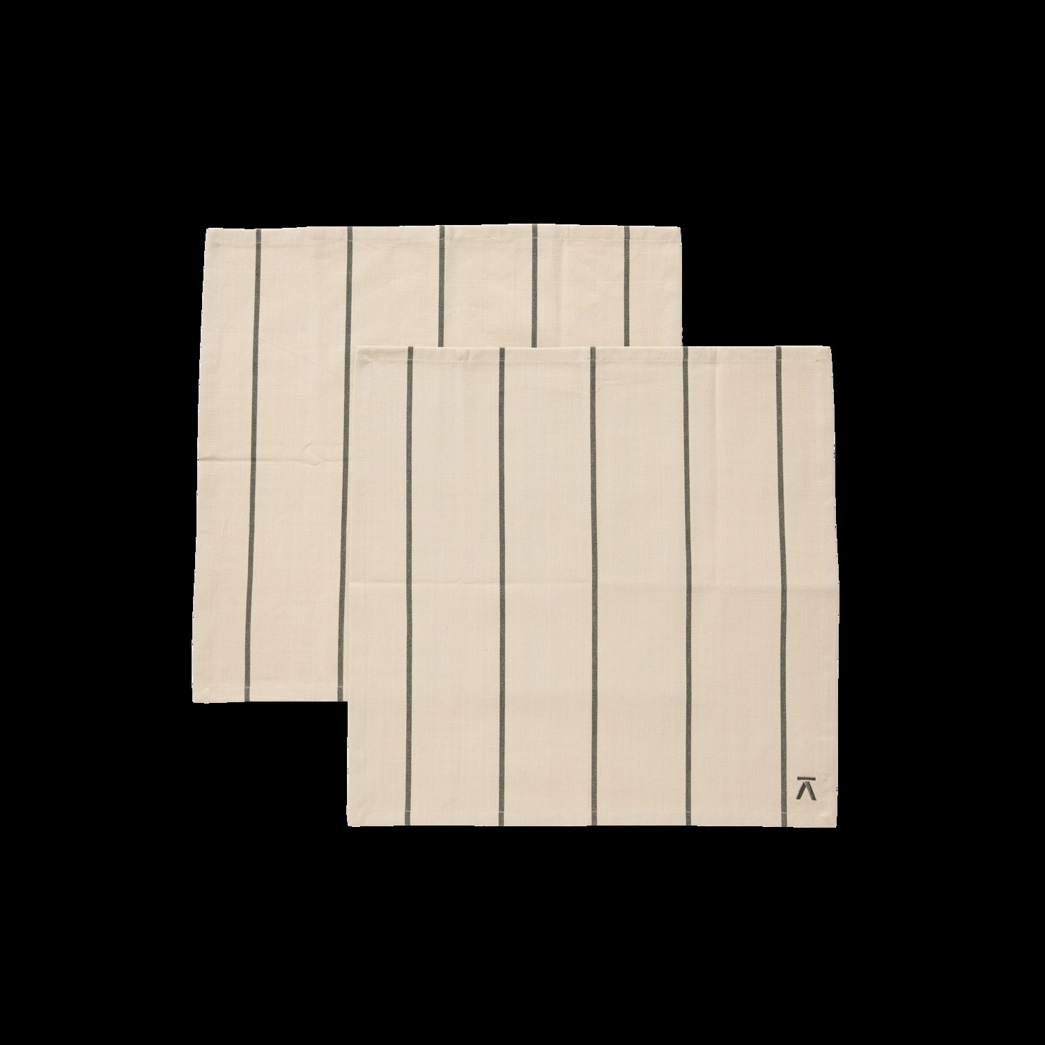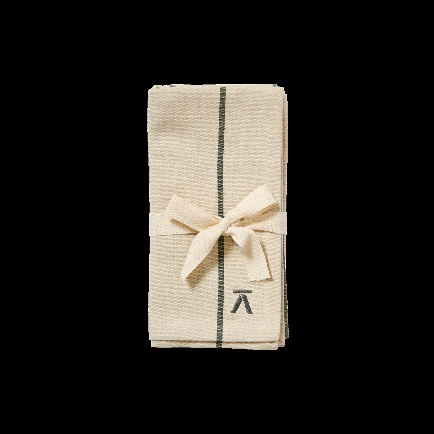 Det grønstribede mønster tilføjer en visuel detalje til dit bord uden at dominere. Hvis du ønsker at skabe en stilfuld bordopsætning, der føles gennemtænkt, passer disse servietter godt ind. De fungerer både til hverdagsbrug og når du har gæster, og logoet i hjørnet giver et diskret touch af Andersen Furniture's tradition.