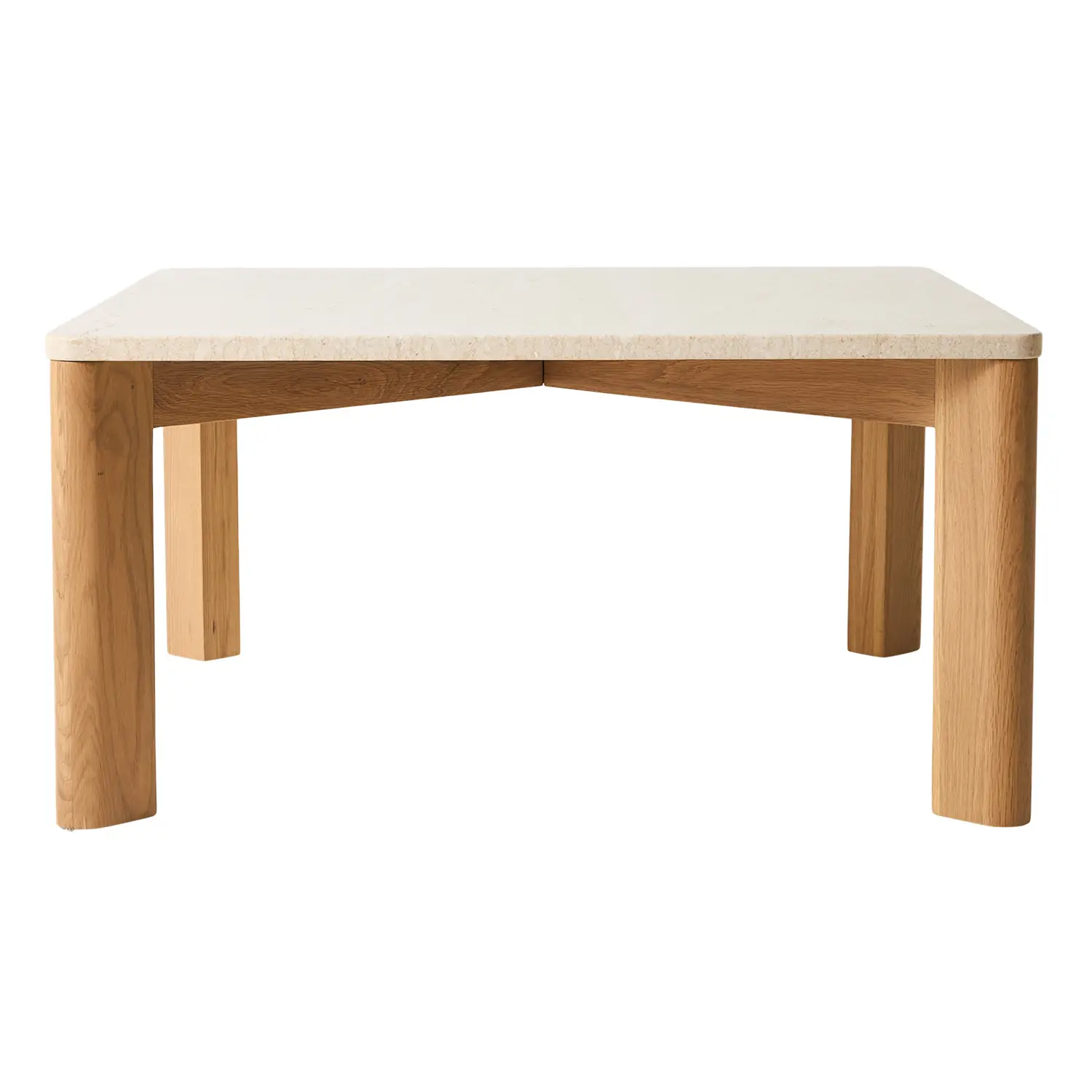 Evoke Coffee Table kombinerer massiv egetræ med en marmorplade, hvilket giver dig et sofabord med både naturlig varme og holdbarhed. Bordpladen måler 80 x 80 cm med en højde på 40 cm, så det passer ind i de fleste stuer. Benene er fremstillet i sort egetræ med mat sort lak.