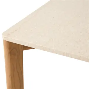 Kombinationen af træ og marmor giver dig et bord, der fungerer både til kaffekrus og som arbejdsflade. Marmorpladen er kølig og glat, hvilket gør den nem at rengøre med en fugtig klud. De fire træben giver stabilitet, så bordet står solidt, selv når du læner dig mod det. Højden på 40 cm passer til de fleste sofaer, så du kan nå dine ting uden at strække dig.