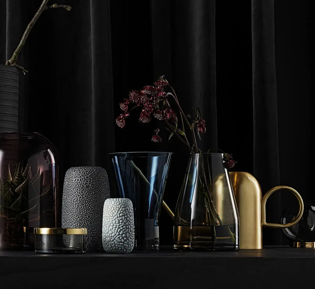 En stor vase til dine fortrukne buketter. Placer flere vaser ved siden af hinanden og lad dem skabe et fantastisk grafisk mønster. Vaserne fås i to former og fire farver.