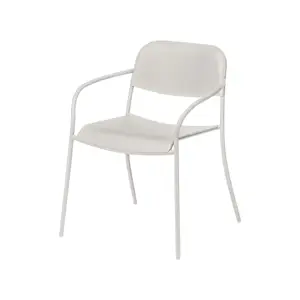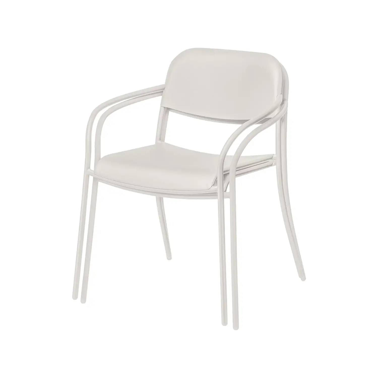 YUA-serien fås i to farver: lys silkegrå og mørk granitgrå. Du kan kombinere stolen med andre varianter fra samme serie for at skabe et sammenhængende udtryk. Det minimalistiske design med buet ryg, sæde og integrerede armlæn passer ind i moderne uderum, hvor funktionalitet og holdbarhed er i fokus.