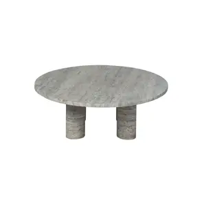 Blomus - Coffee Table, round L - VOLOS - Silver Travertine er et sofabord i sølvtravertin, der kombinerer moderne design med naturlig skønhed. Dette bord forener form og funktion i en helhed, der kan berige mange hjem.
