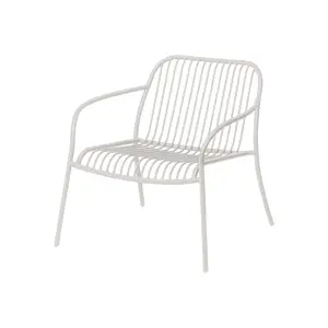 Denne lounge stol er konstrueret af galvaniseret jernstål, et materiale der er anerkendt for sin modstandsdygtighed over for rust. Pulverlakeringen beskytter overfladen mod vejrforholdene, hvilket gør stolen velegnet til udendørs brug. Trådkonstruktionen med åbent design giver et moderne og luftigt udtryk.