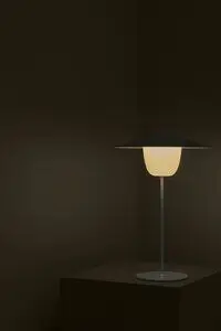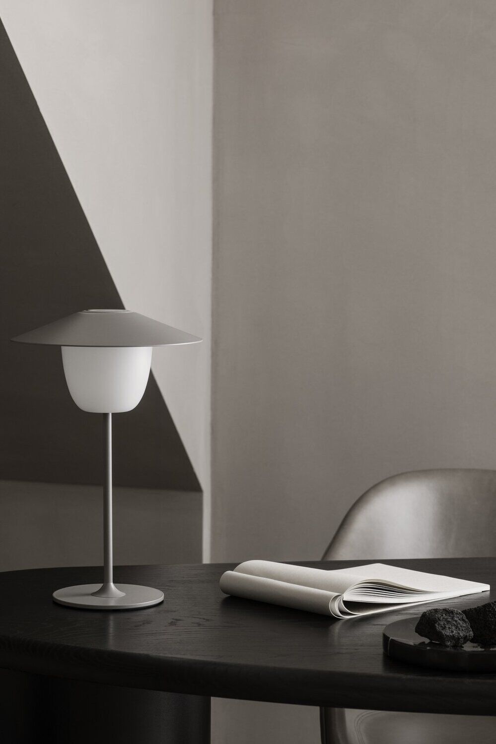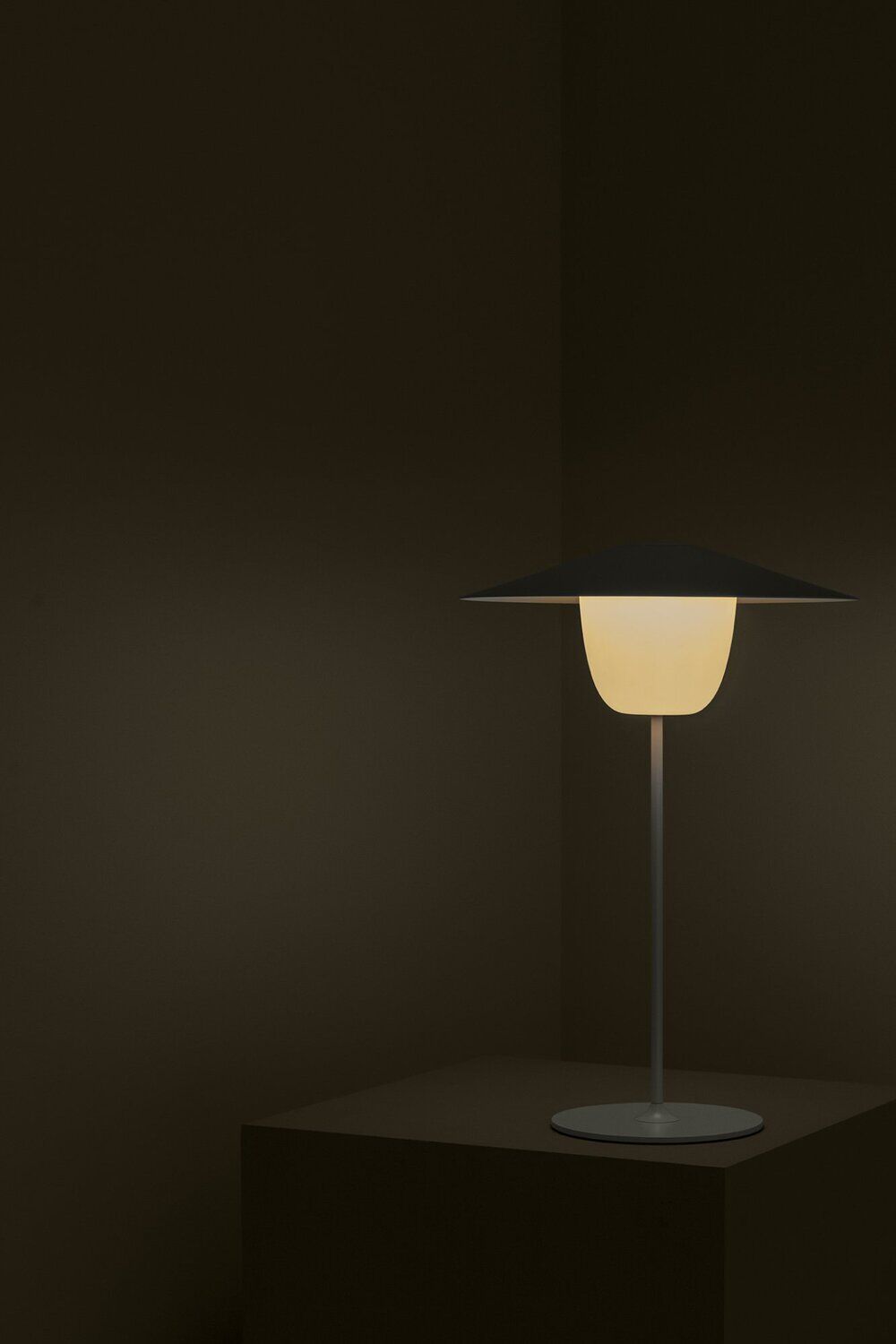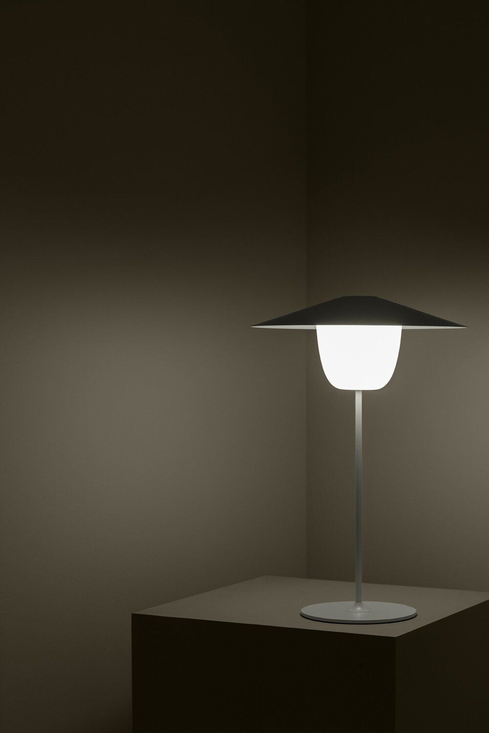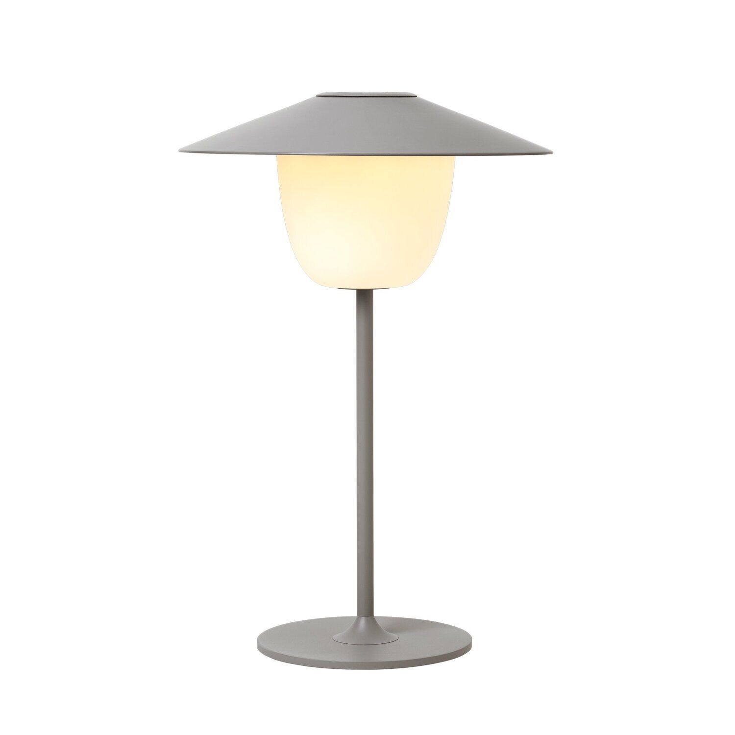 Vielseitig, anpassungsfähig og leuchtend schön. Den mobile LED-Leuchte ANI LAMP med Standfuß bedste fra Hellgrauem, Matt pulverbeschichtetem Aluminium er meget tæt integreret Akku überall einsetzbar. Auf dem Standfuß macht sie ebenso eine blendende Figur as auch am Seil hängend oder auf dem Tisch stehend. Dreht man den Lampenschirm um, verändert sich der Lichtkegel. Durch kurzes Berühren der Ringe auf dem Lampenschirm lassen sich zwei Helligkeitsstufen sowie das Ein- und Ausschalten steuern. Zum Wiederaufladen kan nemt lades på ladet og med USB-kabel. Seil, Ladestation og USB-Kabel er indlæst. In-/Outdoornutzung, Brenndauer: 8 bis 16 Stunden, spritzwassergeschützt. Ebenfalls in Whiteer und Dunkelgrauer Ausführung erhältlich.