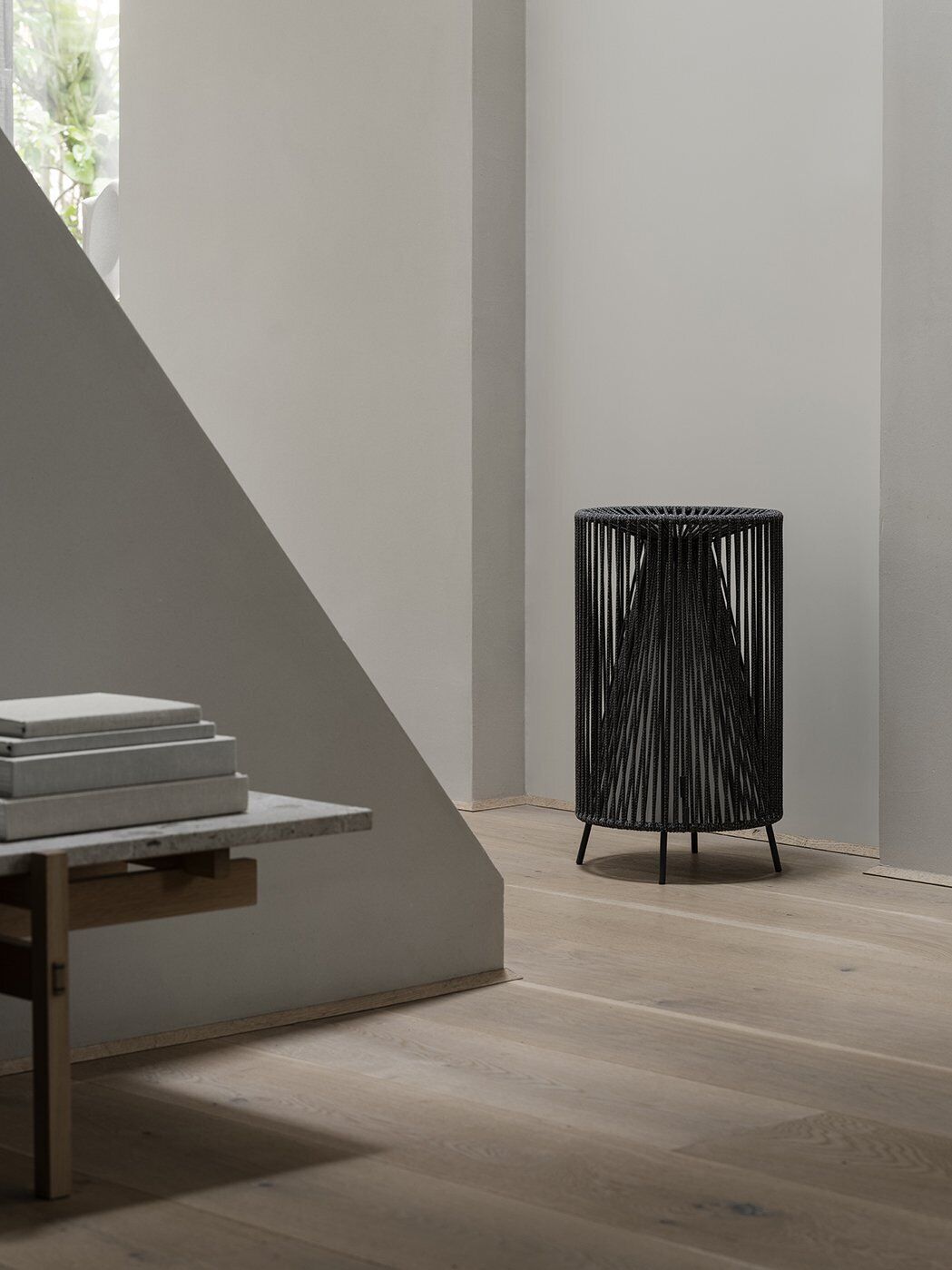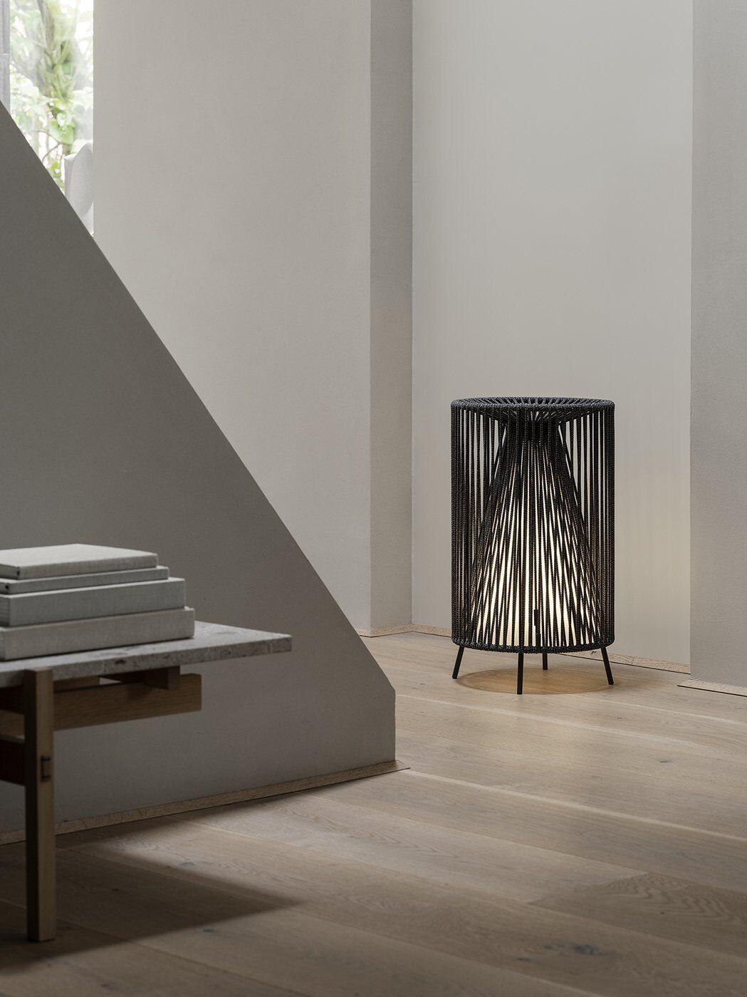 ROPE - MOBIL LED-LAMPE ROPE lampen er en vellykket kombination af kunstnerisk håndværk og moderne teknologi. Et korpus af opviklede reb skjuler en ledningsfri lampe, der er velegnet til både udendørs og indendørs brug. Florian Kallus og Sebastian Schneider fra den anerkendte tegnestue kaschkasch bruger ukonventionelt reb som hovedmateriale til at skabe en minimalistisk form, der kan kombineres og bruges på mange måder. Så snart den er tændt, skabes ægte magi, da der kastes smukke skygger på omgivelserne. Og som de fleste af lamperne i blomus-serien, er ROPE designet til mange forskellige formål og skaber forskellige atmosfærer med sine tre lysstyrkeniveauer.