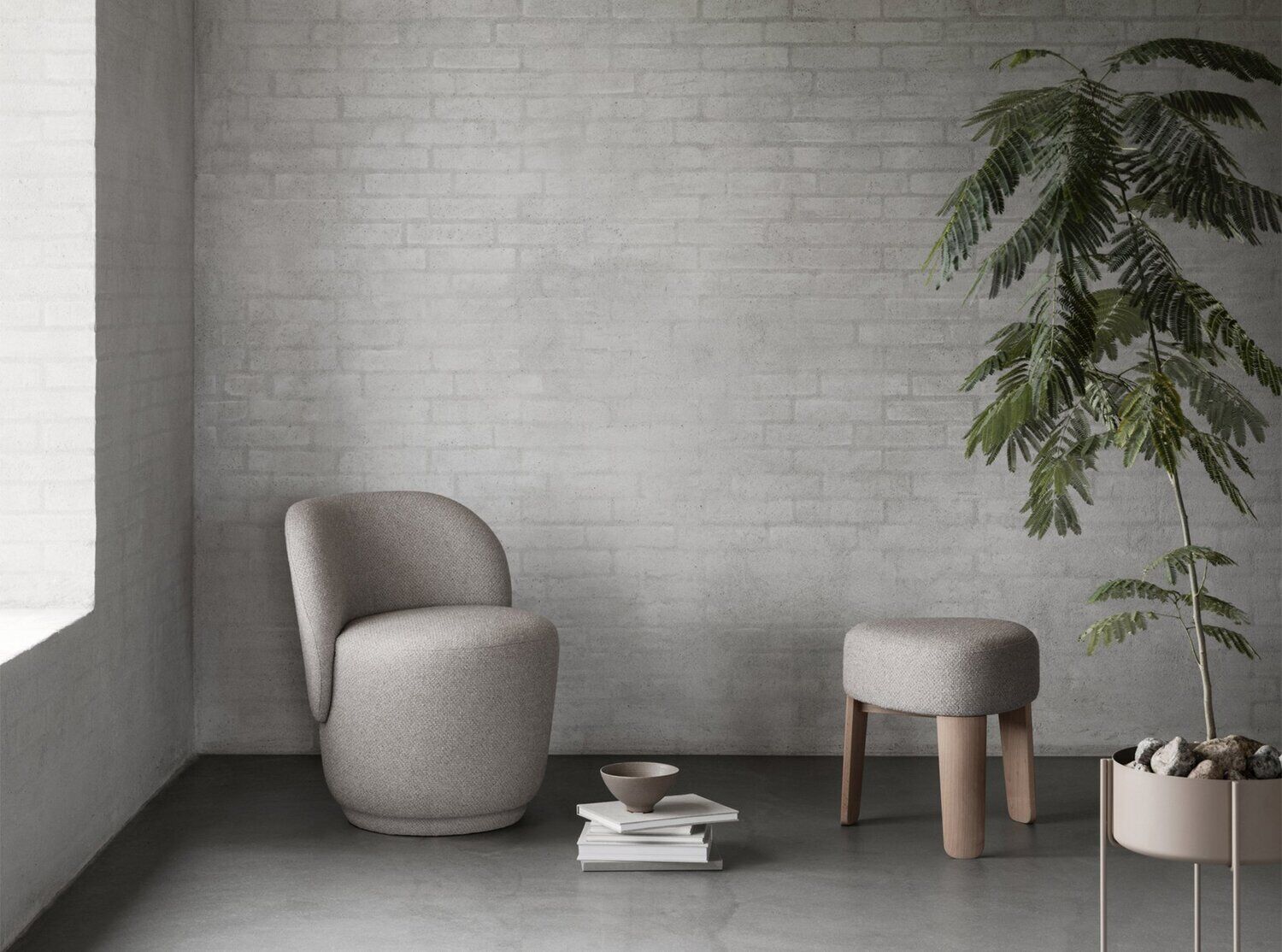KUON – En afrundet form, indbydende og behagelig. Sådan beskrives den nye KUON polstrede møbelserie. Bestående af 2 skamler, i lys og bejdset eg, 2 lænestole, med og uden drejefunktion, samt en 2-personers, giver den forskellige anvendelsesmuligheder. Serien, designet af den japanske designer Kazushige Miyake, har et bæredygtigt bouclé-tekstil.