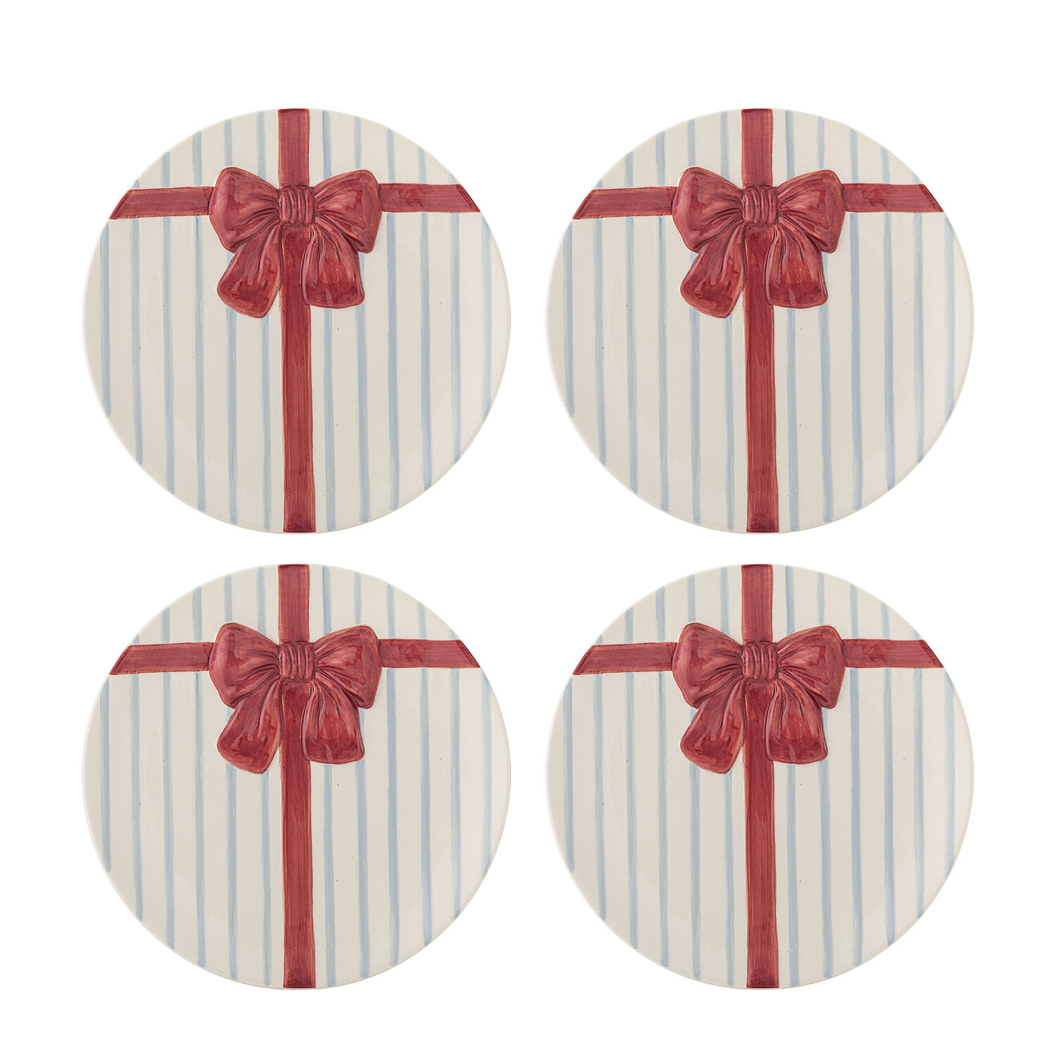 Disse tallerkener er lavet af 100 % stentøj, et materiale der er anerkendt for sin holdbarhed og robusthed i daglig brug. Sættet indeholder fire tallerkener, hver med en diameter på 20,5 cm og en højde på 2 cm. Overfladen er håndmalet med et dekorativt design, der giver hver tallerken et unikt udtryk.