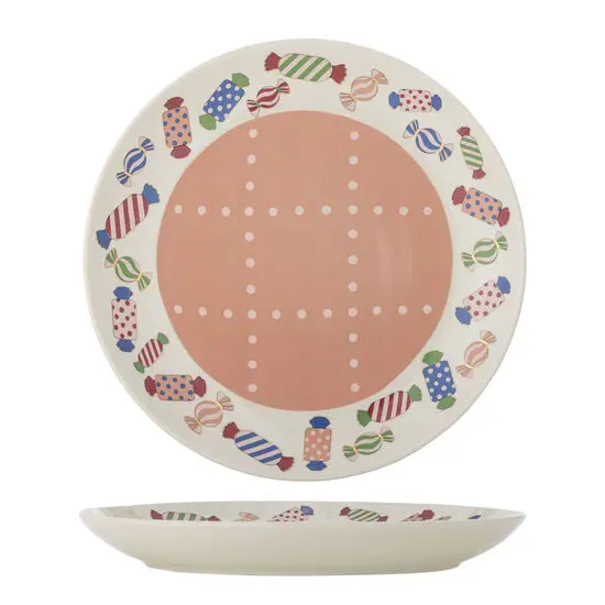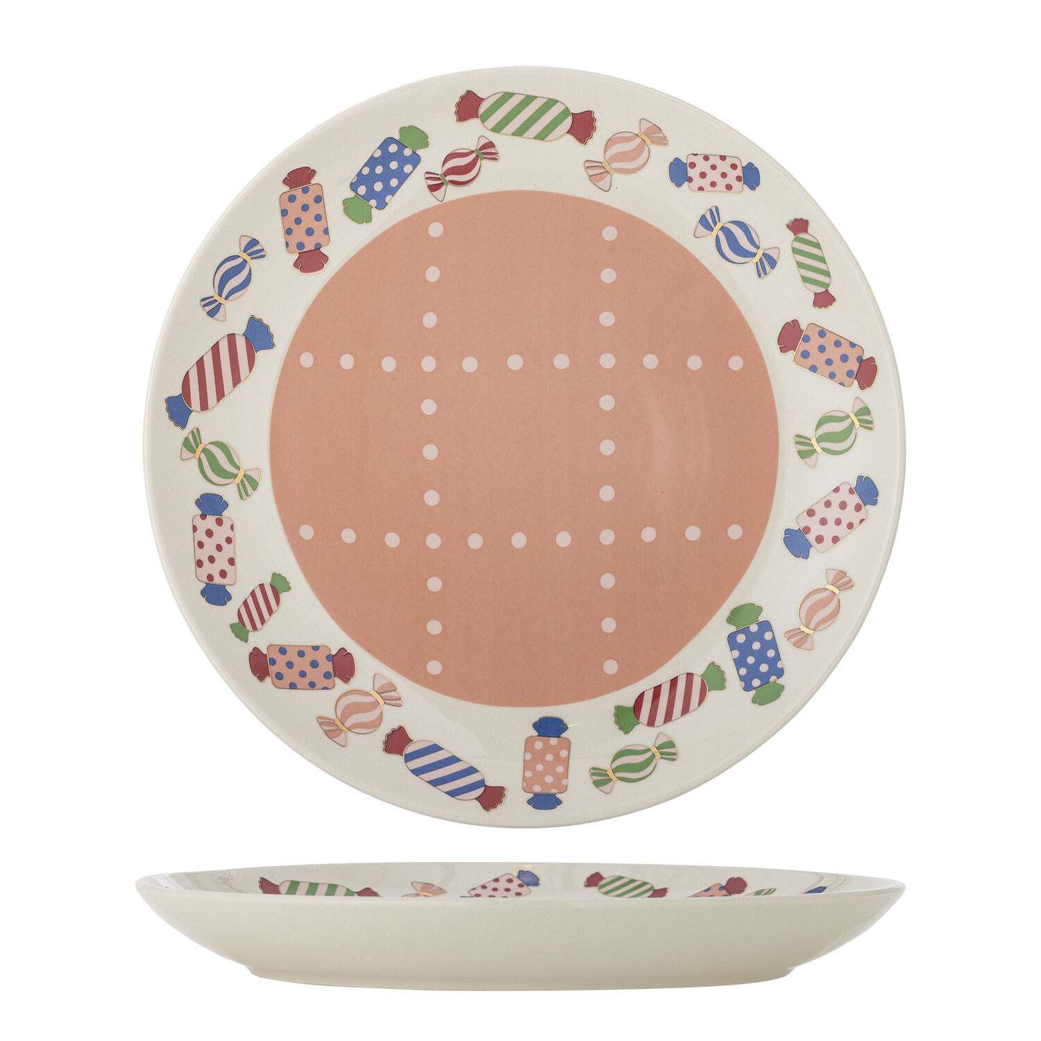 Denne tallerken fra Bloomingville er lavet af 100 % stentøj og måler 30,5 cm i diameter med en højde på 4 cm. Det multifarvede design med legende slikmotiver tilføjer et strejf af humor til bordet, mens glasurfinishen giver en glat overflade, der er nem at rengøre.