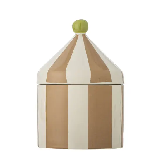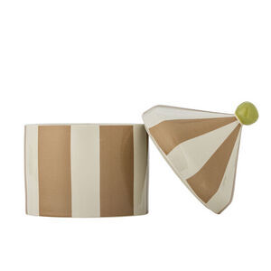 Denne krukke fra Bloomingville kombinerer funktionel opbevaring med håndværksmæssige detaljer. Lavet af 100 % stentøj og med en håndmalet finish i beige og hvide striber giver den et personligt touch til dit køkken eller stue. Krukken er fødevaregodkendt, så du kan trygt opbevare tørre fødevarer som kaffe, te eller kiks.