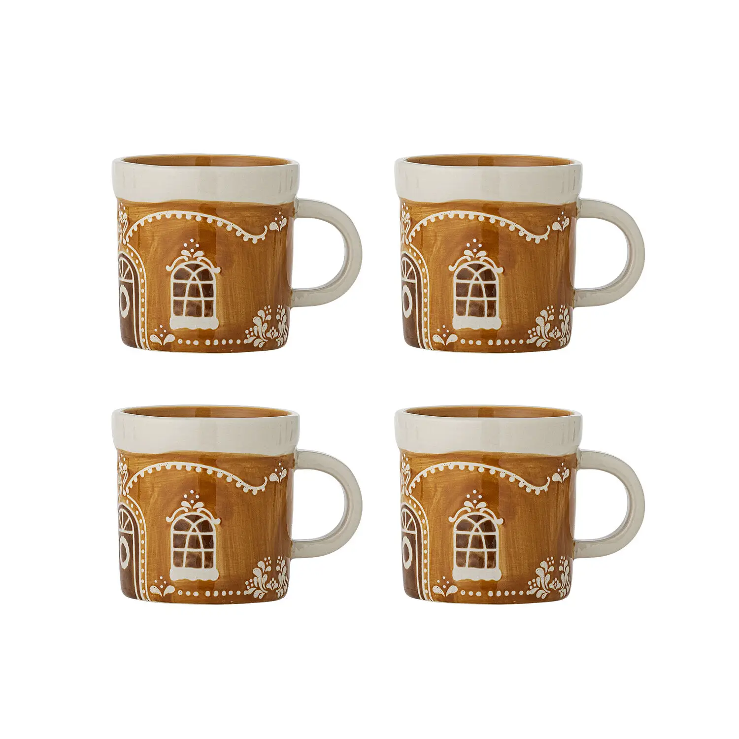 Dette sæt indeholder fire krus i 100 % stentøj, der kombinerer holdbarhed med håndlavet æstetik. Hvert krus er fødevaregodkendt og har en kapacitet på 250 ml, hvilket gør dem velegnede til din daglige kaffe eller te. Den håndmalede finish betyder, at hvert krus har sine egne unikke detaljer.