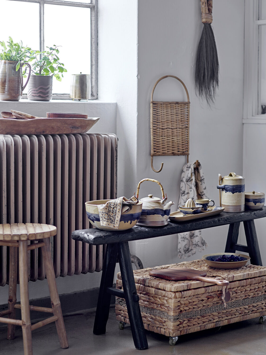 Jolee Jar With Låg fra Bloomingville er en elegant krukke lavet af stål i messing, hvis overflade har et smukt trykt bladmønster. Krukken er så smuk, at du kan bruge den som dekoration eller til opbevaring af te, kaffeposer eller anden mad, der skal opbevares godt. Krukken er et perfekt supplement til dit køkken, hvis du leder efter noget, der ikke kun er funktionelt, men også flot.