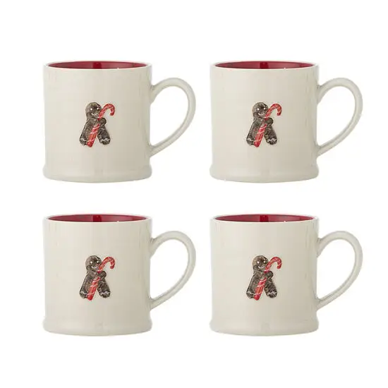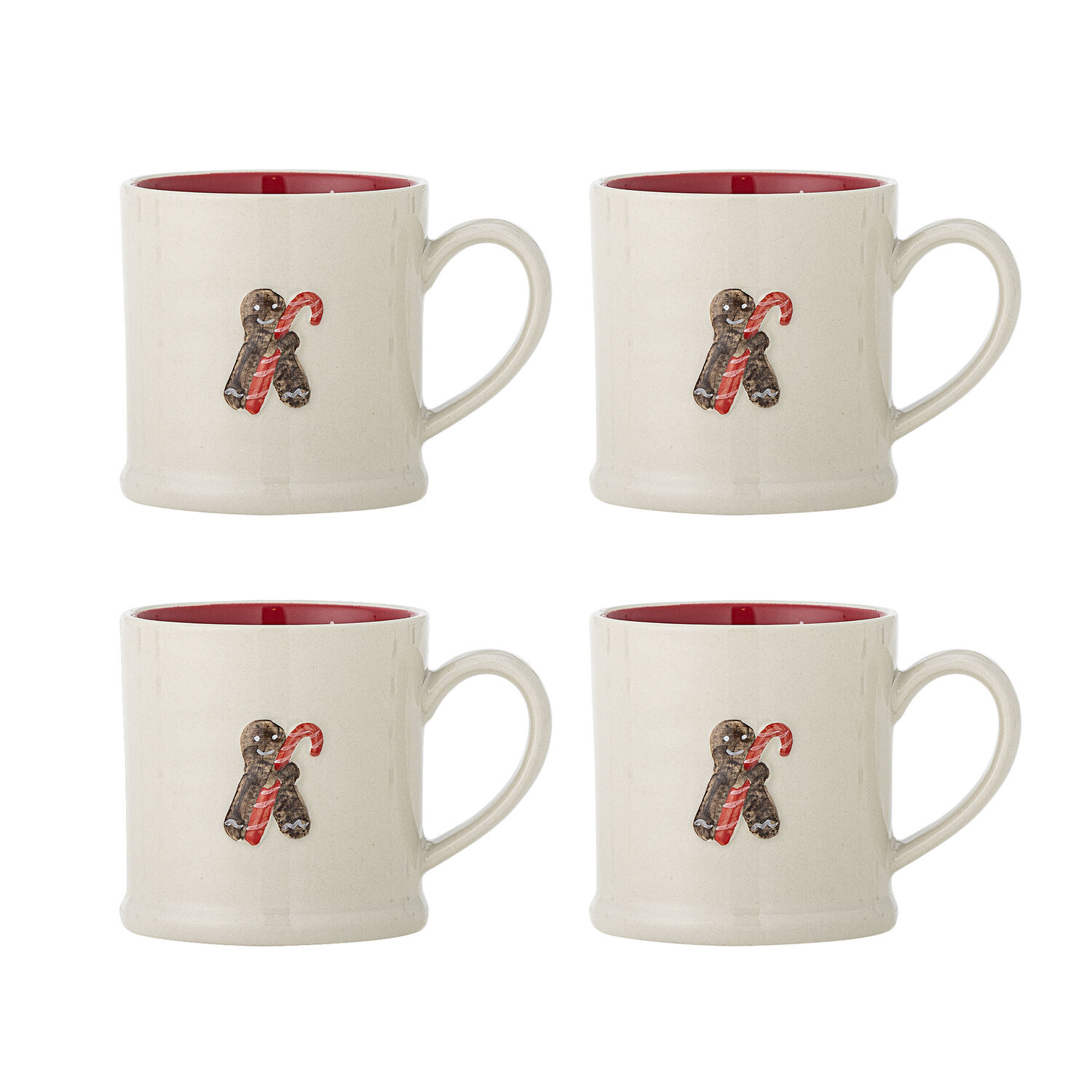 Disse kopper fra Bloomingville leveres i et sæt af 4 og er fremstillet i 100 % stentøj. Materialet er anerkendt for sin holdbarhed og robusthed, hvilket gør kopperne velegnede til daglig brug. Den røde inderside og det legende peberkagemandsmotiv på ydersiden giver et personligt præg.