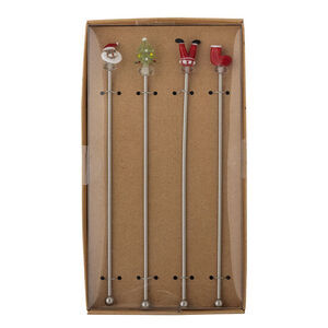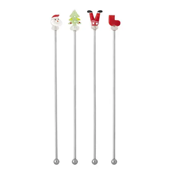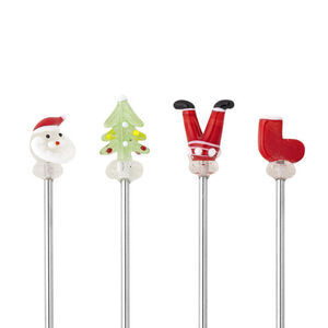Disse cocktailrørepinde bringer festlig stemning til dine drinks med deres unikke dekorative toppe: julemand, juletræ, nisseben og rød strømpe. Lavet af rustfrit stål og glas sikrer materialerne holdbarhed, mens den røde farve og de farverige overflader tilføjer et visuelt præg til dine cocktails.