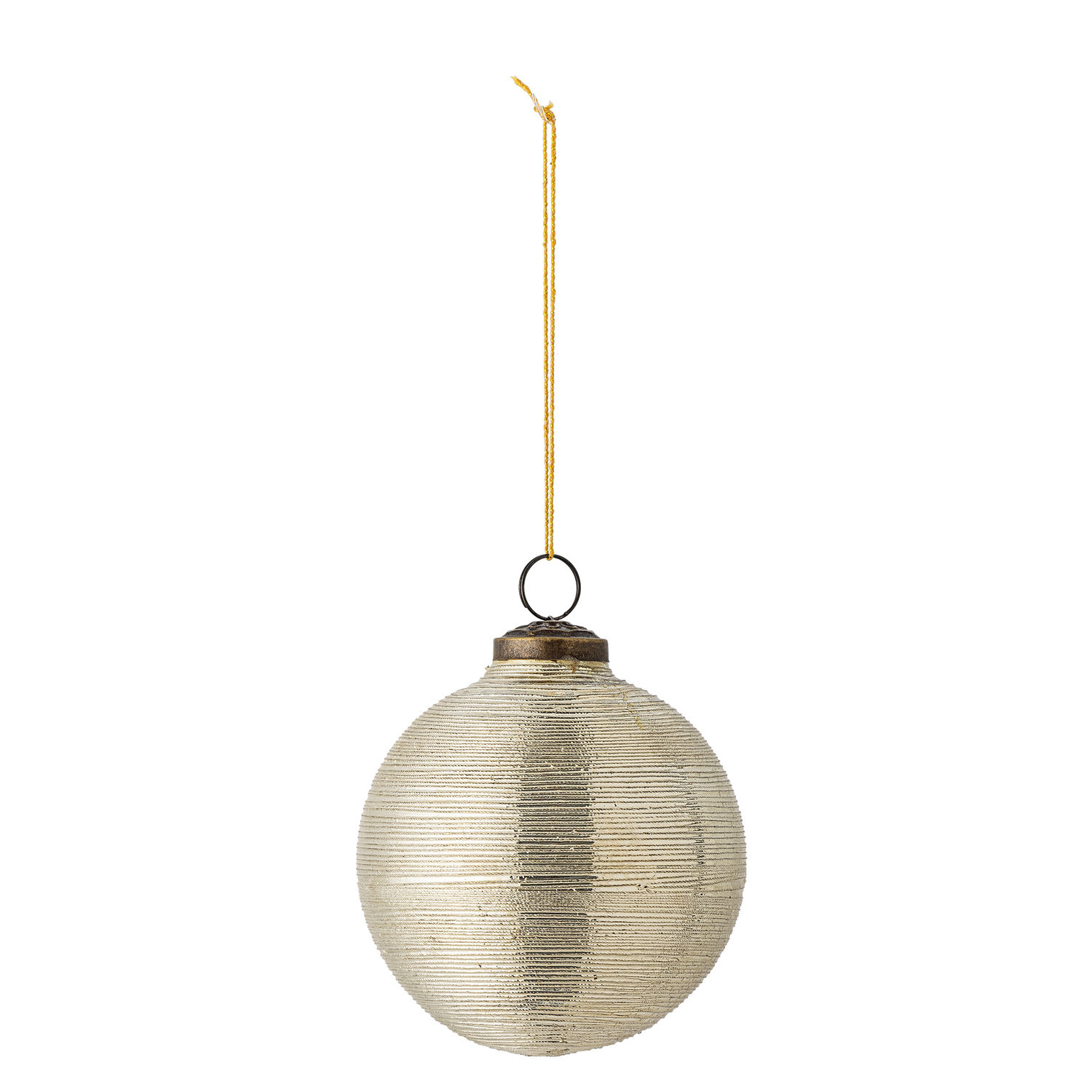 Dette ornament fra Bloomingville har en guldfarvet overflade, der tilføjer en festlig og varm glød til dit hjem. Kombinationen af glas og jern giver en skinnende finish, mens jernkomponenten sikrer holdbarhed. Med en diameter på 10 cm passer ornamentet ind i de fleste dekorative arrangementer.