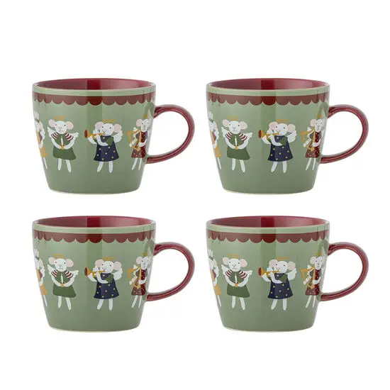 Mikrobølgeovnsikre, så du hurtigt kan genopvarme din drik. Kan vaskes i opvaskemaskinen, hvilket sparer tid på rengøringen. Fødevaregodkendte og sikre til daglig brug. Den grønne yderside er dekoreret med legende dyrefigurer, mens den røde inderside og hank tilføjer et farverigt touch til dit køkken.
