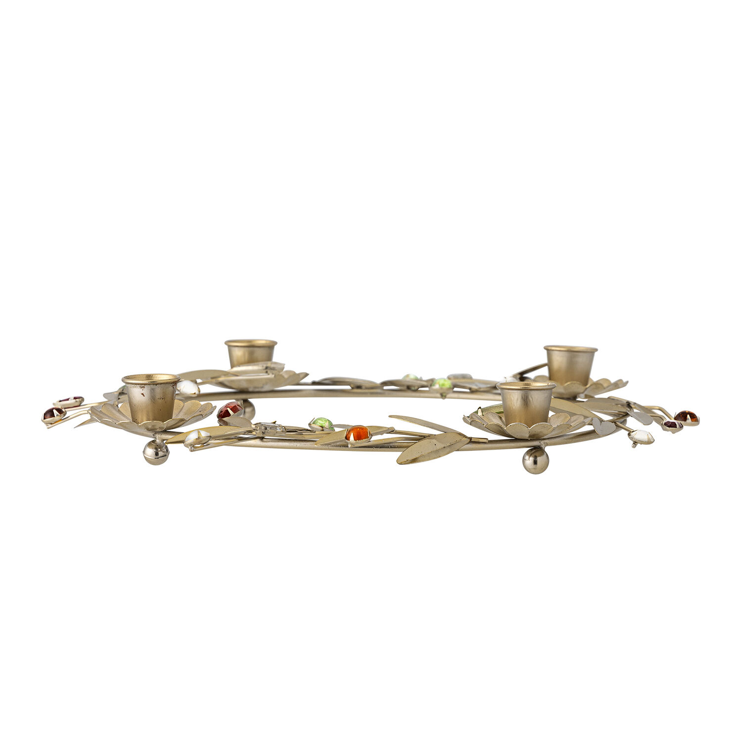 Jernkonstruktionen gør stagen robust nok til at håndtere varmen fra fire tændte lys uden at bøje sig eller miste formen. Højden på 5 cm holder lysene på et passende niveau, så flammen ikke kommer for tæt på bordet. Guldfarvens varme tone supplerer både klassiske og moderne indretningsstile gennem december måned.