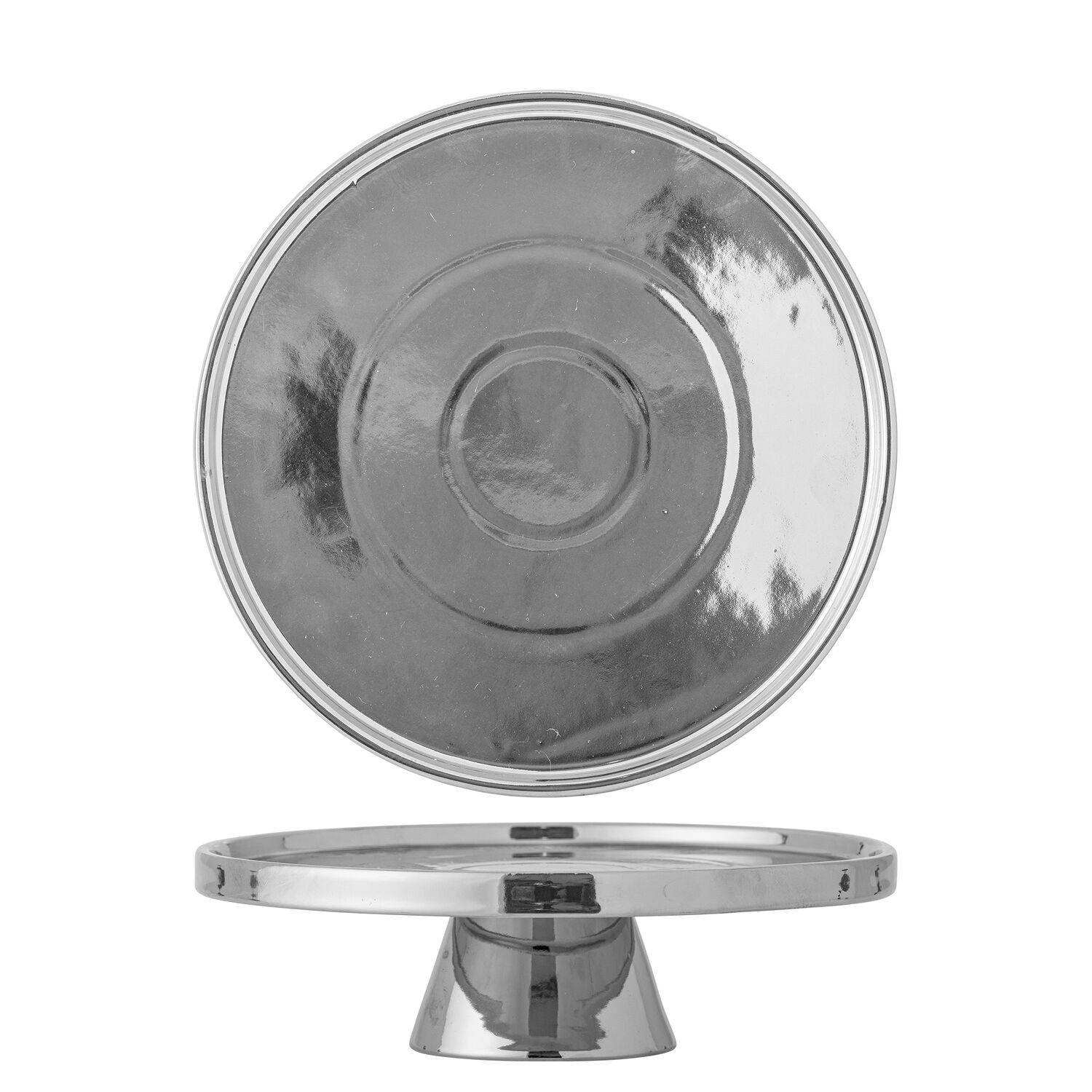 Dette kagefad fra Bloomingville har en reflekterende sølvfinish, der giver dine kager og desserter en flot præsentation. Det er fremstillet af 100 % stentøj, hvilket giver fadet en robust kvalitet, der holder til daglig brug. Fadet måler 26 cm i diameter og 8 cm i højde.