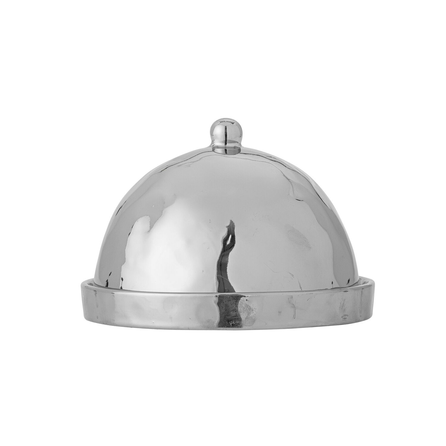 Denne smørboks fra Bloomingville kombinerer funktionalitet med et moderne udtryk. Den er lavet af 100% stentøj med en reflekterende sølvfinish, der passer ind i både hverdagen og når du har gæster. Den måler 16,5 cm i diameter og 11,5 cm i højde.
