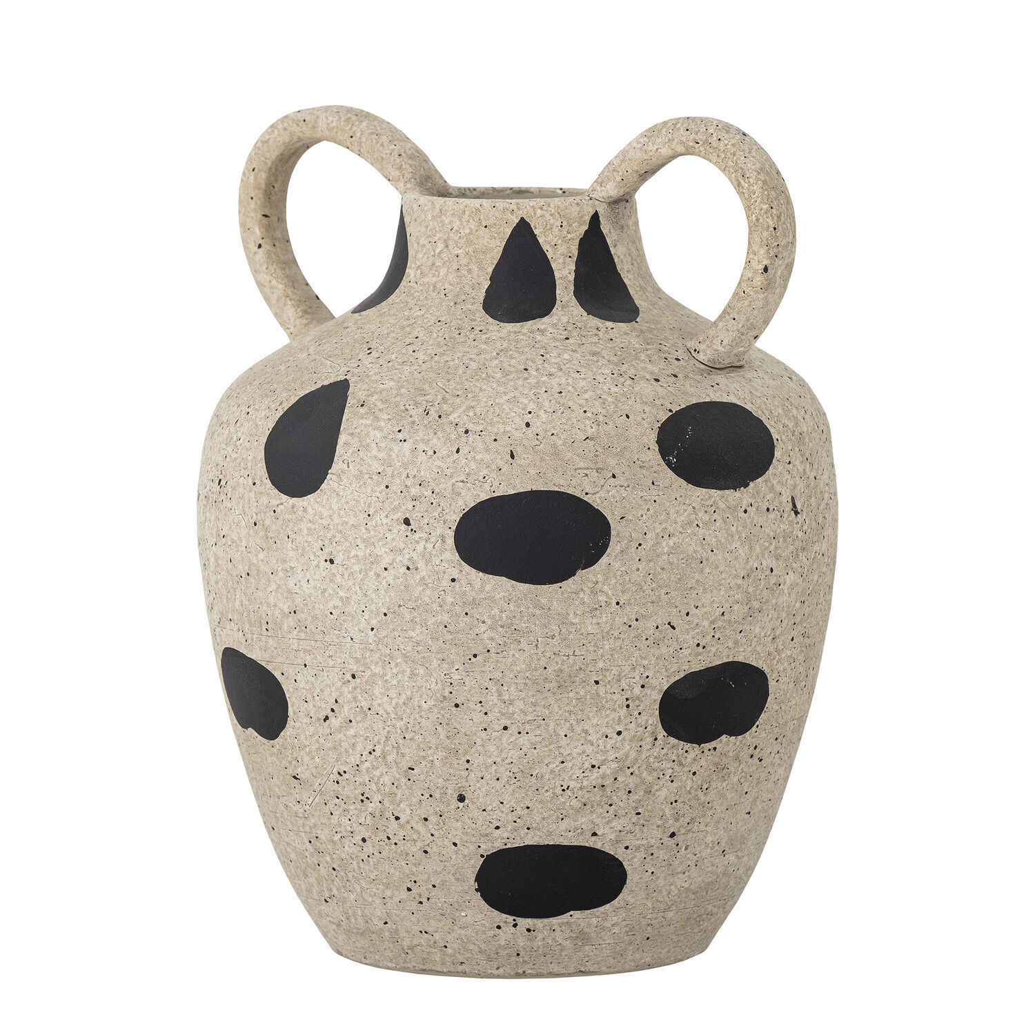 Taye Deco Vasen fra Bloomingville er lavet af naturfarvet stentøj. Vasen er dekorativ med organisk formede pletter og 2 søde hanke. Perfekt til dekoration på sidebordet eller brug den med naturgrene i din vindueskarm.