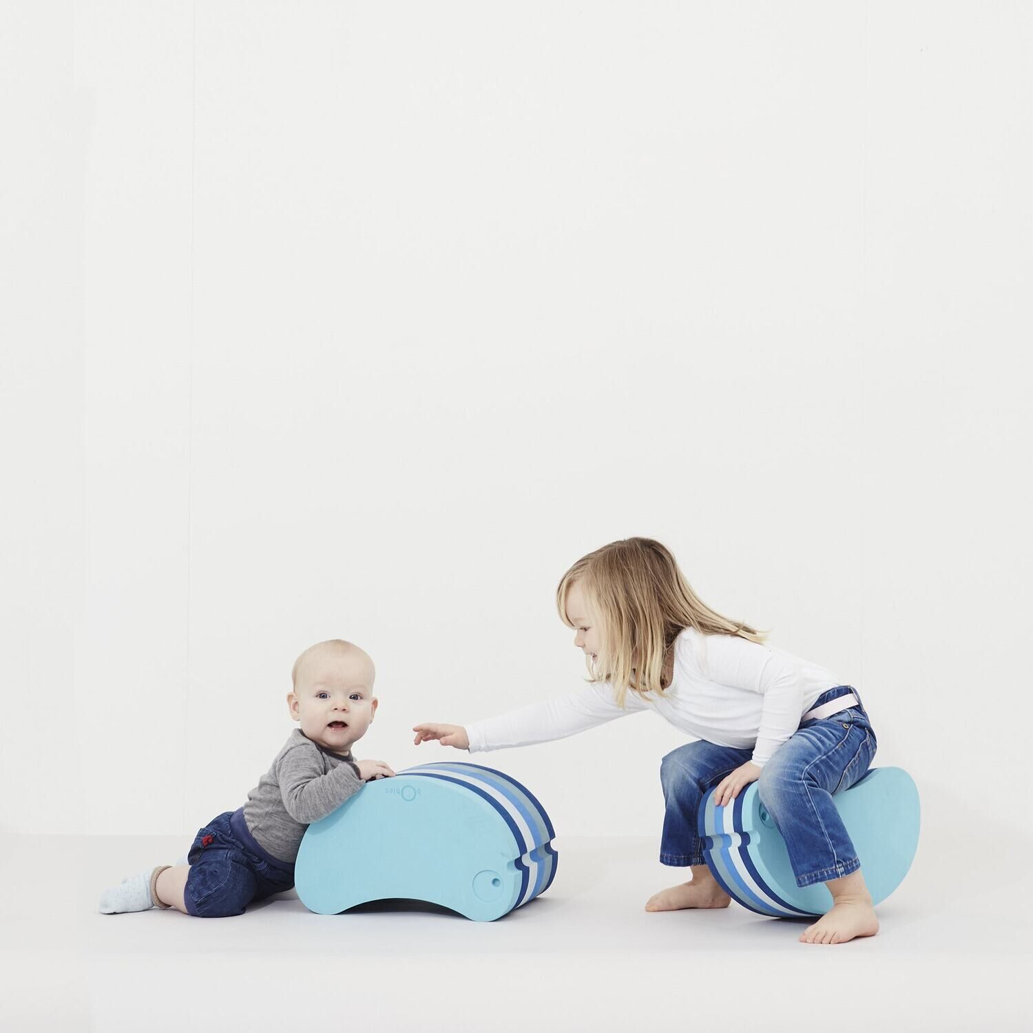 bObles Ælling er det perfekte tumlemøbel til børn i alle aldre. Den findes i to størrelser, og både sammen og hver for sig inspirerer Ælling til leg og motorik. For baby er den lille Ællings ryg en skøn sliske, hvorfra der kan trænes nakke og ryg, men den er også perfekt til de første vip. Sæt baby på Ælling og vip frem og tilbage, mens du holder ved hofterne. De fleste barslende forældre oplever, at de bruger utrolig meget tid på gulvet - men bObles Ælling kan let tages med op på bordet, hvor den samme øvelse kan laves med god øjenkontakt med baby og behagelig siddestilling for forældrene. Tumlingen vil elske at bruge Ælling som sin første vippe - både fra side til side og frem og tilbage, hvis barnet sidder overskrævs. Ællingen er også fuldstændig fantastisk som en lille skammel, når der skal vaskes hænder, børstes tænder, hjælpes med madlavningen eller testes dørhåndtag. Gør toilettræningen til en leg ved at bruge både stor og lille bObles Ælling som trappe - det skridsikre materiale gør det nemt for barnet selv at komme på toilettet, den søde Ælling får smilet frem hos den lille toiletaspirant, og det stilrene og ikoniske design pynter på badeværelset. Og i alle andre rum i huset. bObles tumlemøbler i Marble Nature farver er en smuk og multifunktionel tilføjelse til dit hjem. Med inspiration fra naturens elementer, smelter de varme marmorfarver ind i indretningen og giver et både legende og afdæmpet udtryk til glæde for både børn og forældre. Ligesom bObles’ andre tumlemøbler, er Marble Nature-serien lavet i fast EVA-skum med en blød overlade, som inviterer til leg, fantasi og motorisk udfoldelse for baby, tumling og barn. Samtidig fungerer de fantastisk som interiør til hele hjemmet.