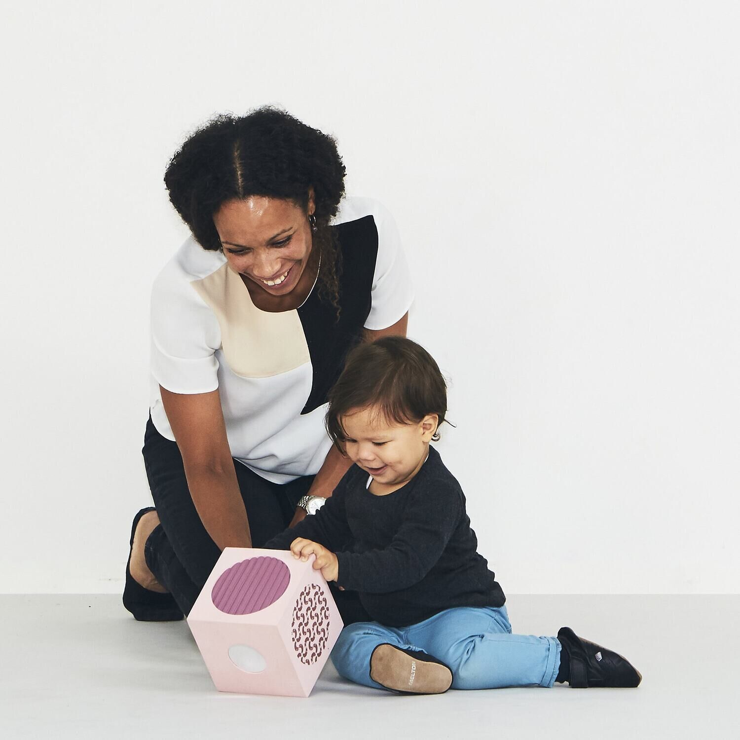 Din baby kan føle, kigge på og undersøge terningen og din baby får pirret nysgerrigheden og boostet bevægeglæden endnu mere, når I gør det sammen.