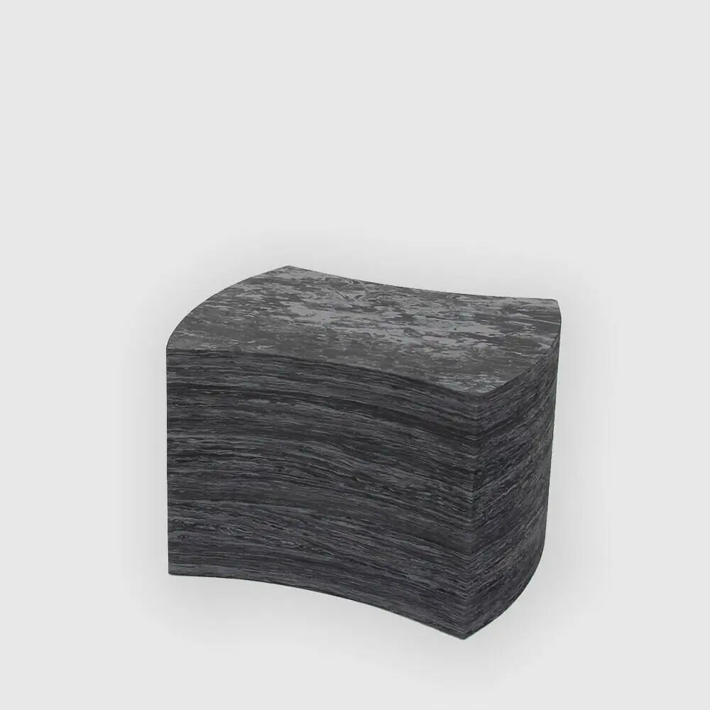 Mange legetøjsmøbler skiller sig markant ud i boligen, men denne tumbler har et diskret, mørkegrå marmorlignende mønster, der fungerer som et designelement. Den lagdelte tekstur og buede form gør den nem at integrere i forskellige rum, mens den robuste konstruktion håndterer daglig brug.