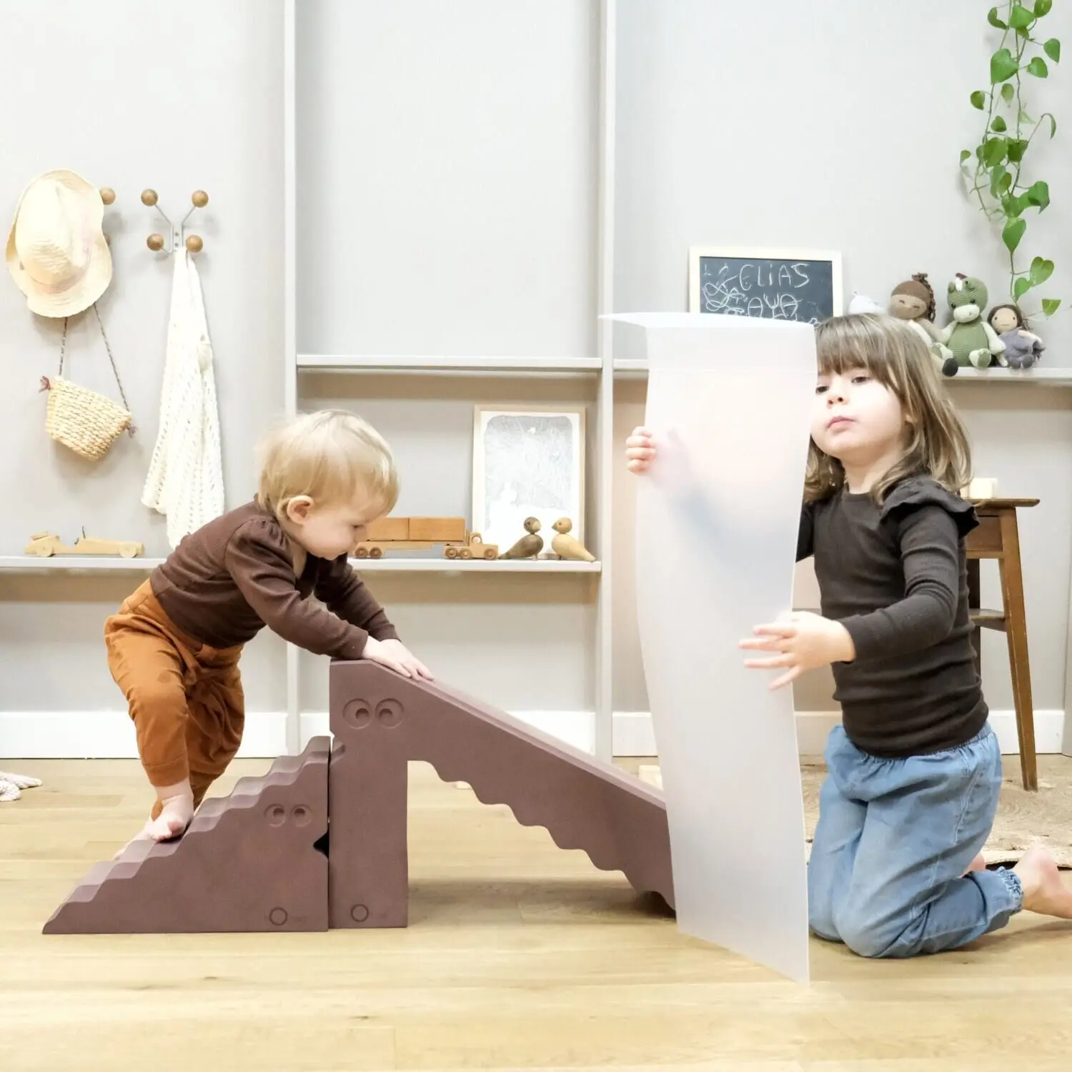 Alle børn elsker Dino - og det vil du også! Der findes nemlig ikke meget legetøj, der kan give så stor glæde i så mange år som bObles Dino. Samtidig med at den stimulerer motorik og fantasi bedre end de fleste tumlemøbler. Fra baby til stort barn kan Dino bruges som rutsjebane, klatrestativ, babysliske og line. Den lille del af Dinos ryg er rillet og dermed skøn til at sætte gang i følesansen hos baby, når der bliver hygget på maven. Senere er den samme ryg sjov at bruge som trappe op til rutsjebanen, der med det tilhørende rutsjeunderlag i glat PBA-fri plast giver sommerfugle i maven hele vejen ned igen. Når der skal indrettes børneværelse er Dino et must have. Det ikoniske design er en fryd for øjet - men dens multifunktionalitet gør Dino til børnenes bedste ven, fordi den også kan bruges som skammel for at komme op i højderne, gør opstigningen til sengen til en leg og er hyggelig at læne sig op ad, når der skal læses bøger. Skal det store barn udfordres på tumlebanen eller "Jorden er giftig", lægger man Dino om på siden, og pludselig har man en vild line at balancere på. Det er selvfølgelig ikke kun børn og babyer, der kan tage en rutsjetur på Dino. Legetøjsbiler, bolde og Barbiedukker vil også elske at bruge den som rampe og legestativ. De naturlige farver er omhyggeligt udvalgt, for at skabe rolige, sanselige og inspirerende omgivelser for barnet at lege i, samtidig med at farverne, såvel som tumlemøblerne er tidløse og kan holde til mere end én sæson.