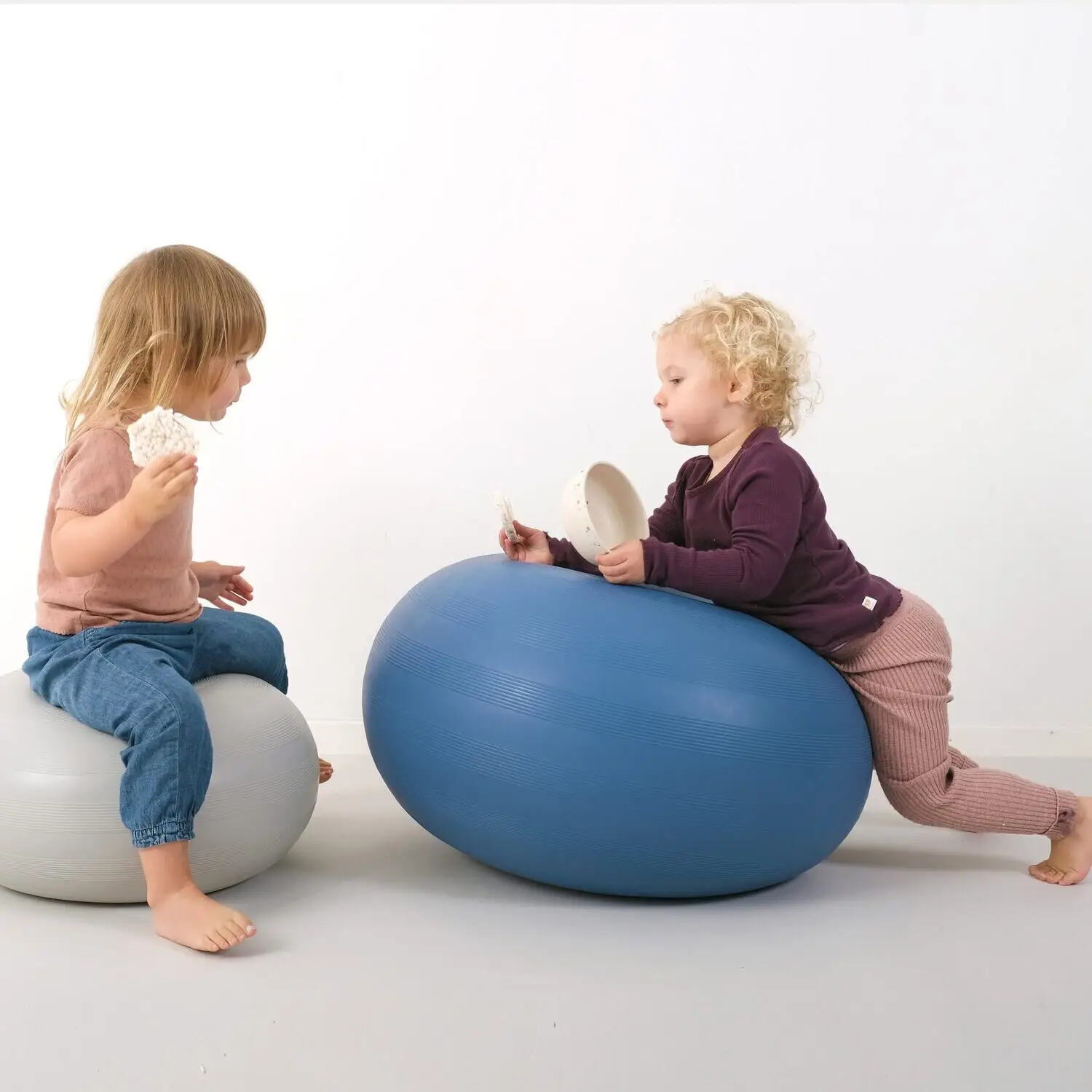 Donuten kan stå stabilt ved at trykke den ned i gulvet, hvilket sikrer, at den ikke glider under brug. Det elastiske gummimateriale giver både komfort og holdbarhed, så den tåler aktiv leg. bObles Donut fås i tre størrelser, så du kan vælge den størrelse, der passer til dit barns alder og udvikling.