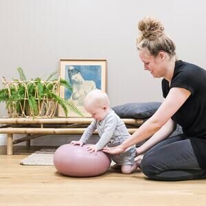 Sæt Donut på højkant og pludselig har alle familiemedlemmer det sjoveste hoppedyr. Baby vil elske at sidde på skødet af forældrene, mens de hopper rundt på den store Donut. Ligesom det vil være en sanserejse, der både stimulerer vestibulærsansen, muskelledsansen og følesansen, når baby bliver gynget frem og tilbage og fra side til side på Donut, mens der en gang imellem bliver slået i siden på den, så baby kan mærke vibrationerne i den elastiske gummi.