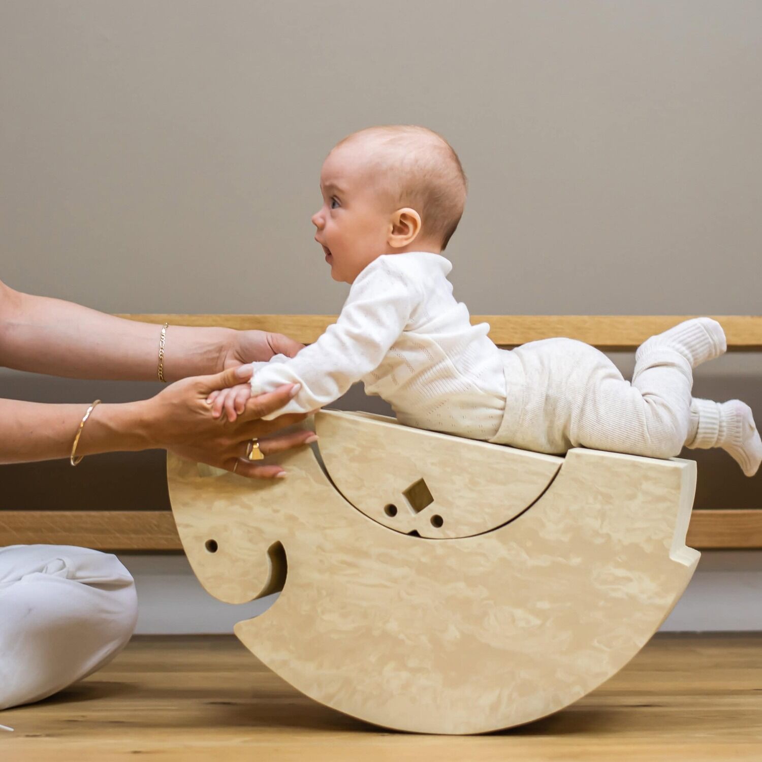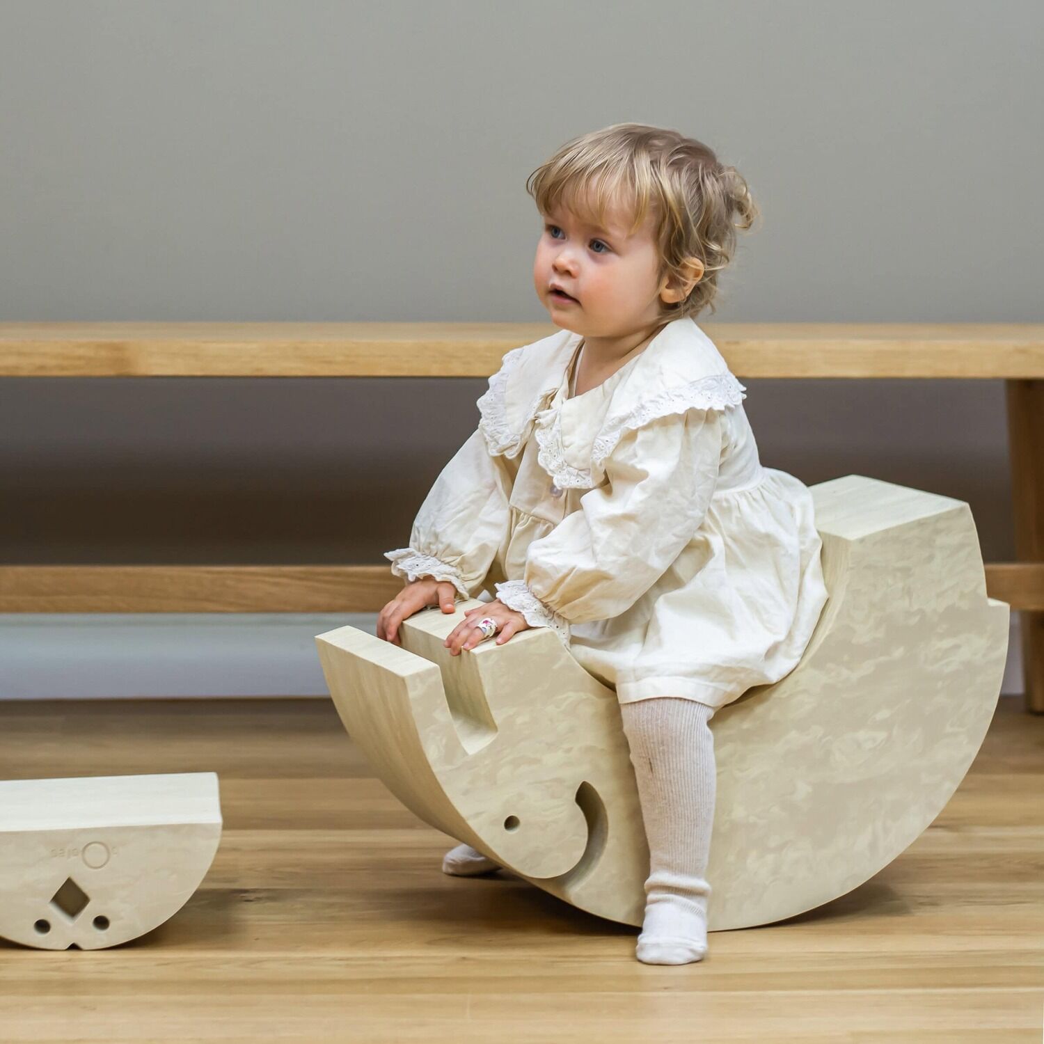 bObles Elefant er et elsket tumlemøbel, der kombinerer leg, motorisk udvikling og praktisk funktionalitet i én form. Den hjælper børn op i højderne, giver sommerfugle i maven og fungerer samtidig som stol, bord og skammel i hverdagen. Den er ideel til rutiner som håndvask, tandbørstning og sengetid - og samtidig et motorisk redskab, der udvikler barnets balance og koordination gennem leg. Fra baby til stort barn er Elefanten et alsidigt tumlemøbel. Den mindste kan træne nakke og ryg ved at ligge hen over den buede ryg, og når Kylling lægges i maven på Elefanten, bliver den til en sjov og stimulerende vippe for baby, der styrker vestibulærsansen og skaber nærvær mellem barn og forælder. Tumlingen kan begynde at vippe siddende, og som modet vokser, også stående. Når barnet skal lære at gå, er Elefanten et trygt og stabilt sted at rejse sig op - EVA-skummet er skridsikkert og blødt mod både fødder og gulv. bObles Elefant er let at transportere fra rum til rum, og designet er gennemtænkt, så det passer ind både på børneværelset og i stuen. Den kan indgå i tumlebaner, bruges som siddemøbel ved spisebordet eller som skammel til de mindste, der gerne vil hjælpe til i køkkenet. Uanset hvordan den bruges, inviterer den til leg, bevægelse og motorisk udvikling - og holder til det hele. Mål: H 31 x L 55 x B 21 cm