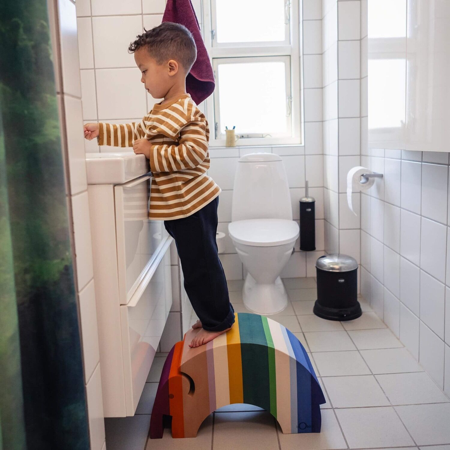bObles Elefant er et elsket tumlemøbel, der kombinerer leg, motorisk udvikling og praktisk funktionalitet i én form. Den hjælper børn op i højderne, giver sommerfugle i maven og fungerer samtidig som stol, bord og skammel i hverdagen. Den er ideel til rutiner som håndvask, tandbørstning og sengetid - og samtidig et motorisk redskab, der udvikler barnets balance og koordination gennem leg. Fra baby til stort barn er Elefanten et alsidigt tumlemøbel. Den mindste kan træne nakke og ryg ved at ligge hen over den buede ryg, og når Kylling lægges i maven på Elefanten, bliver den til en sjov og stimulerende vippe for baby, der styrker vestibulærsansen og skaber nærvær mellem barn og forælder. Tumlingen kan begynde at vippe siddende, og som modet vokser, også stående. Når barnet skal lære at gå, er Elefanten et trygt og stabilt sted at rejse sig op - EVA-skummet er skridsikkert og blødt mod både fødder og gulv. bObles Elefant er let at transportere fra rum til rum, og designet er gennemtænkt, så det passer ind både på børneværelset og i stuen. Den kan indgå i tumlebaner, bruges som siddemøbel ved spisebordet eller som skammel til de mindste, der gerne vil hjælpe til i køkkenet. Uanset hvordan den bruges, inviterer den til leg, bevægelse og motorisk udvikling - og holder til det hele. Mål: H 31 x L 55 x B 21 cm