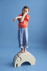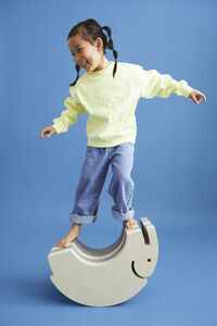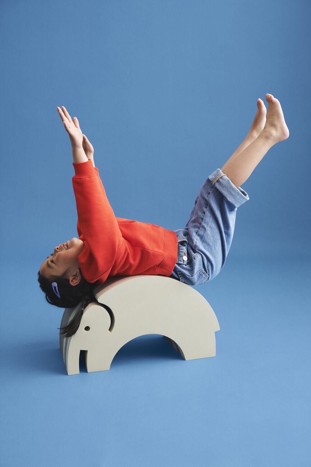 bObles Elefant er et elsket tumlemøbel, der kombinerer leg, motorisk udvikling og praktisk funktionalitet i én form. Den hjælper børn op i højderne, giver sommerfugle i maven og fungerer samtidig som stol, bord og skammel i hverdagen. Den er ideel til rutiner som håndvask, tandbørstning og sengetid - og samtidig et motorisk redskab, der udvikler barnets balance og koordination gennem leg. Fra baby til stort barn er Elefanten et alsidigt tumlemøbel. Den mindste kan træne nakke og ryg ved at ligge hen over den buede ryg, og når Kylling lægges i maven på Elefanten, bliver den til en sjov og stimulerende vippe for baby, der styrker vestibulærsansen og skaber nærvær mellem barn og forælder. Tumlingen kan begynde at vippe siddende, og som modet vokser, også stående. Når barnet skal lære at gå, er Elefanten et trygt og stabilt sted at rejse sig op - EVA-skummet er skridsikkert og blødt mod både fødder og gulv. bObles Elefant er let at transportere fra rum til rum, og designet er gennemtænkt, så det passer ind både på børneværelset og i stuen. Den kan indgå i tumlebaner, bruges som siddemøbel ved spisebordet eller som skammel til de mindste, der gerne vil hjælpe til i køkkenet. Uanset hvordan den bruges, inviterer den til leg, bevægelse og motorisk udvikling - og holder til det hele. Mål: H 31 x L 55 x B 21 cm