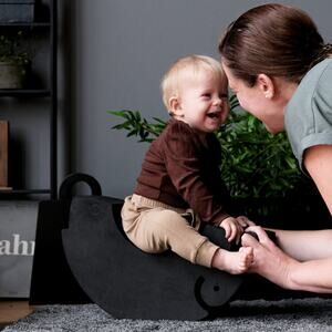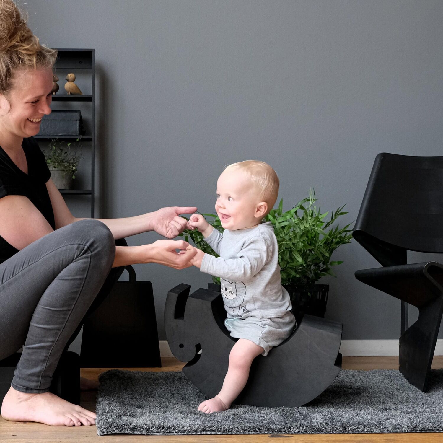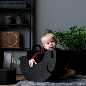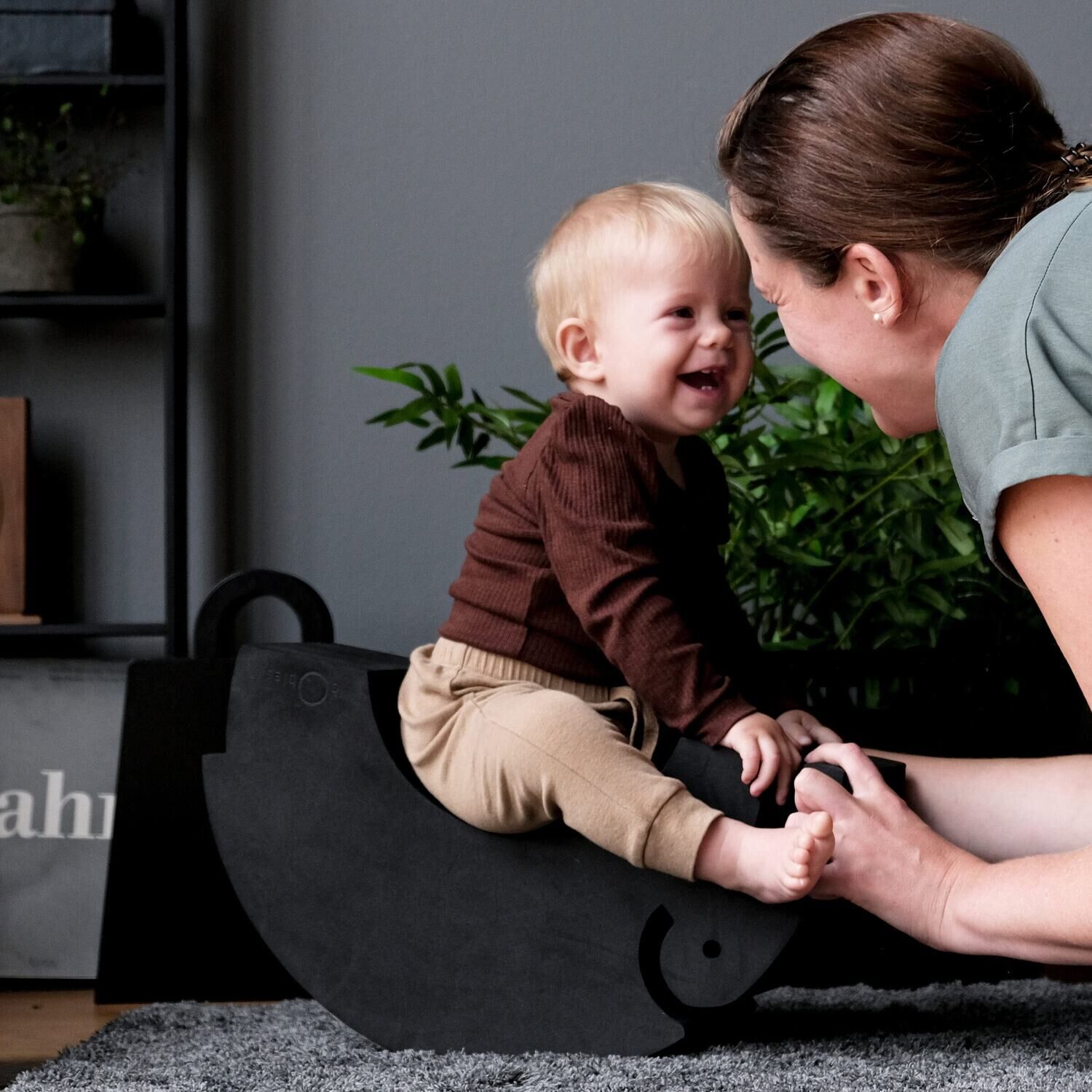 Laying on top of bObles Elephants rounded back is a great way for the newborn baby to strengthen the neck. By laying in Elephants stomach the older baby can strengthen the back while rocking back and forth. When your child is old enough to learn how to walk your child can practice pulling him or herself up with the support of bObles Elephant. Because of the soft surface and material bObles Elephant will not harm neither your child nor living room floor.
