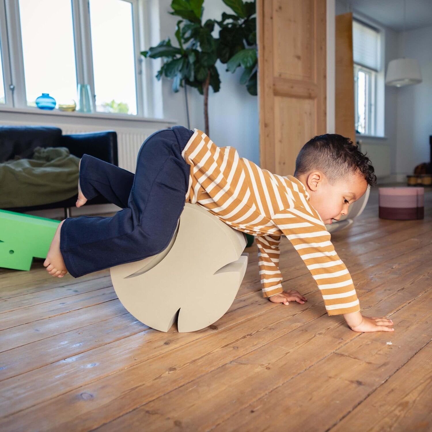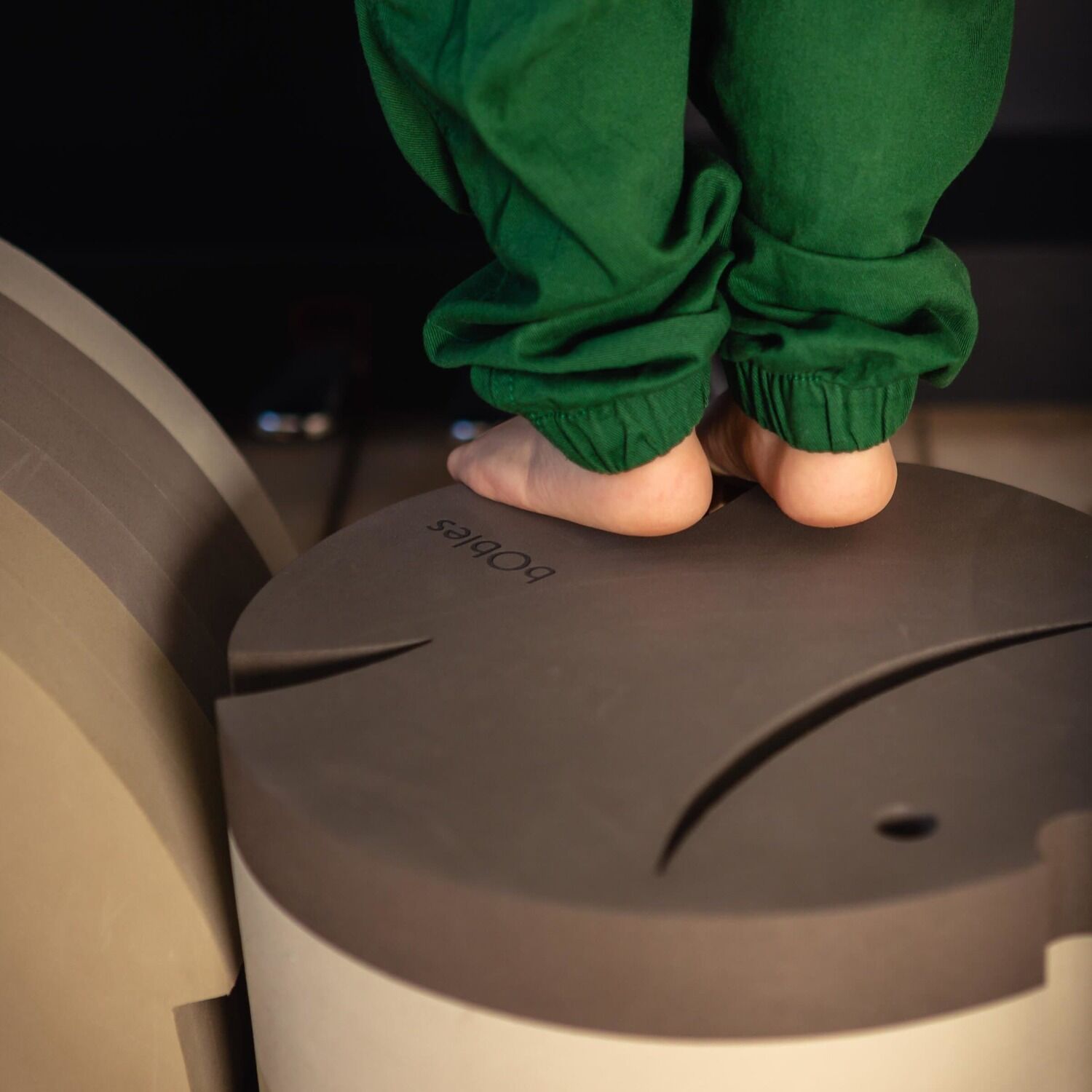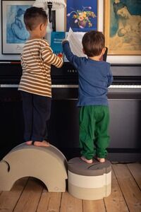 bObles Fisk L er et alsidigt og inspirerende tumlemøbel, der inviterer til leg, vip og balance for både små og lidt større børn. Med sin stabile størrelse og karakteristiske form er Fisk L perfekt som skammel, vippe og balanceelement, og den kan bruges overalt i hjemmet - ved håndvasken, i køkkenet, som del af en tumlebane eller blot som et roligt sted at sidde. Når barnet sidder overskrævs på Fiskens runding, trænes både balance og faldrefleks, og det bløde skridsikre EVA skum sikrer, at den står stabilt uden at ridse gulvet. Fiskens størrelse gør det let for barnet at bruge den som støtte, når der skal rejses op, og den kan vippe i alle retninger, hvilket styrker kropsbevidsthed og motorik. bObles Fisk L kan bruges alene eller kombineres med de mindre Fisk i serien for at skabe sjove og udfordrende tumlescenerier. Brug dem som trin ved toilettræning, som trædesten i en motorisk bane eller som stille legeplads midt i stuen. Med sit ikoniske og stilrene design passer Fisk ind i alle hjemmets rum. Lavet i slidstærkt EVA skum med en blød overflade, som holder til mange års leg og bevægelse.