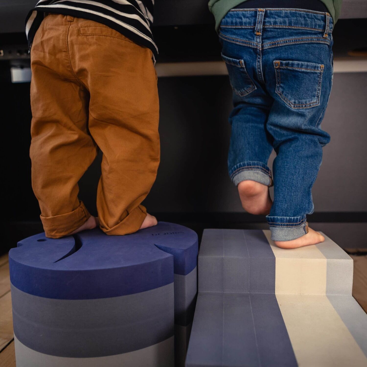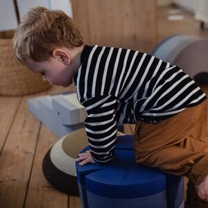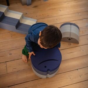 bObles Fisk L er et alsidigt og inspirerende tumlemøbel, der inviterer til leg, vip og balance for både små og lidt større børn. Med sin stabile størrelse og karakteristiske form er Fisk L perfekt som skammel, vippe og balanceelement, og den kan bruges overalt i hjemmet - ved håndvasken, i køkkenet, som del af en tumlebane eller blot som et roligt sted at sidde. Når barnet sidder overskrævs på Fiskens runding, trænes både balance og faldrefleks, og det bløde skridsikre EVA skum sikrer, at den står stabilt uden at ridse gulvet. Fiskens størrelse gør det let for barnet at bruge den som støtte, når der skal rejses op, og den kan vippe i alle retninger, hvilket styrker kropsbevidsthed og motorik. bObles Fisk L kan bruges alene eller kombineres med de mindre Fisk i serien for at skabe sjove og udfordrende tumlescenerier. Brug dem som trin ved toilettræning, som trædesten i en motorisk bane eller som stille legeplads midt i stuen. Med sit ikoniske og stilrene design passer Fisk ind i alle hjemmets rum. Lavet i slidstærkt EVA skum med en blød overflade, som holder til mange års leg og bevægelse.
