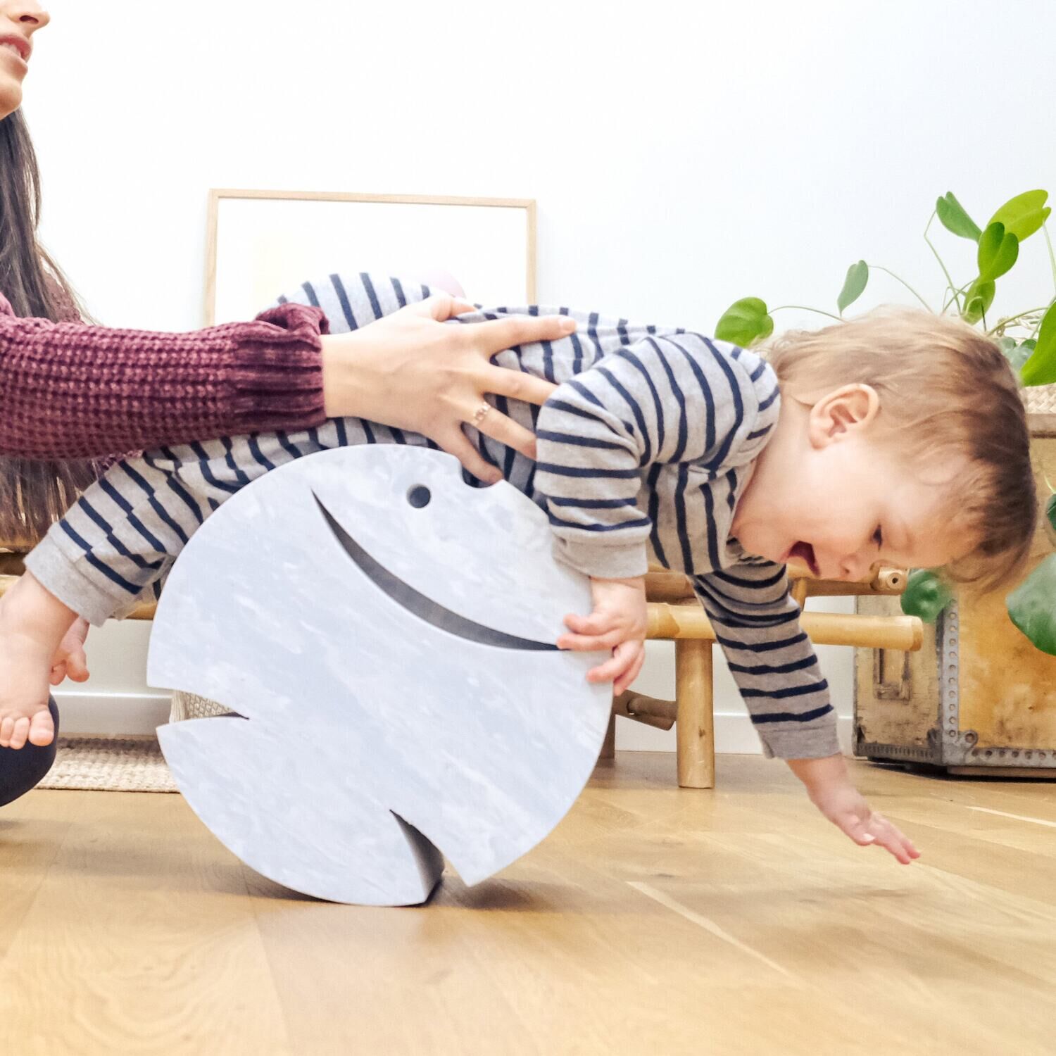 Fisk L Mist styrker børns kropsbevidsthed og motorik gennem aktiv leg. Fremstillet af slidstærkt EVA-skum fungerer den som skammel, vippe og balanceelement – tre funktioner i ét produkt. Den vipper i alle retninger, hvilket giver variation i bevægelserne og udfordrer balancen.