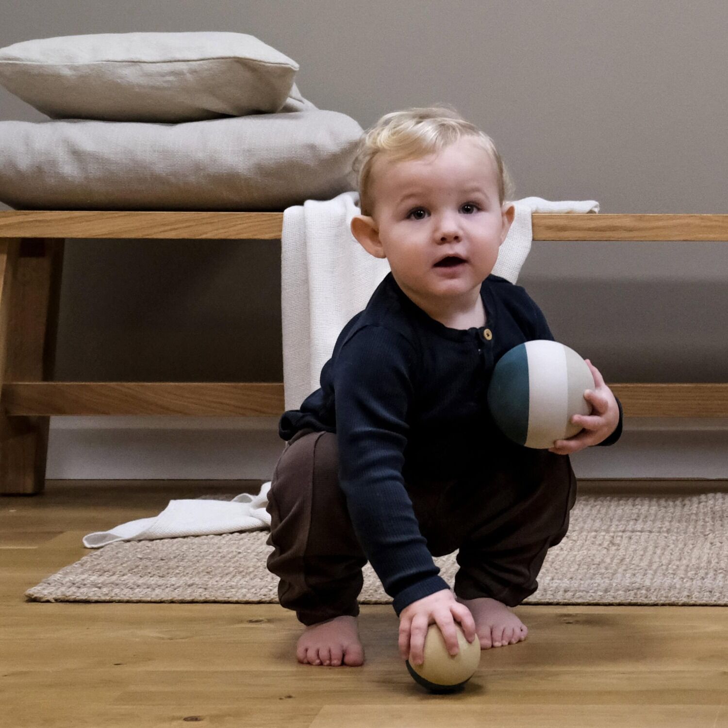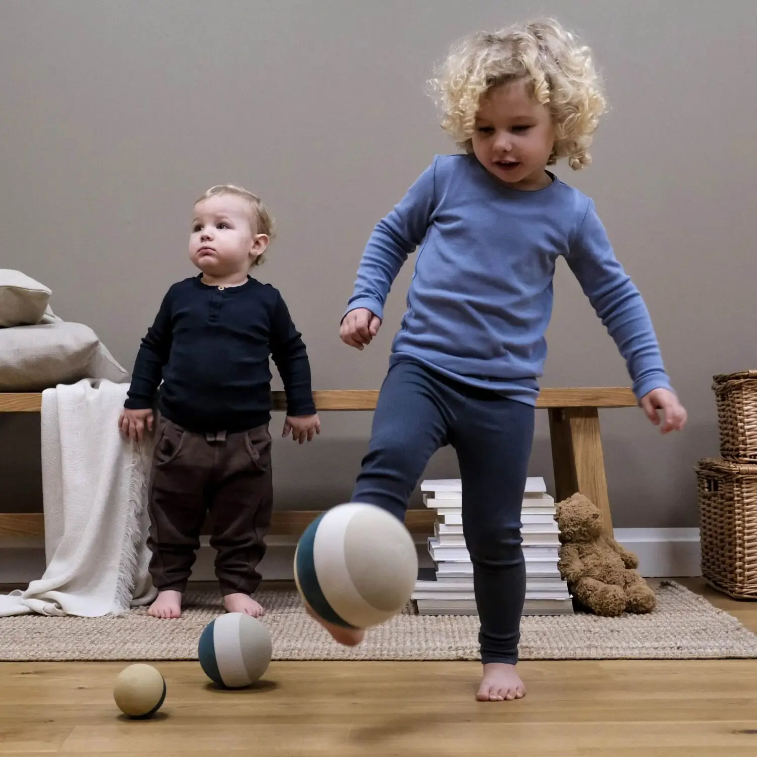 At lege med bolde er en af de mest motorisk stimulerende aktiviteter - både for babyer, børn og voksne. Og derfor elsker vi alle vores bolde! bObles Marble Nature Bolde består af tre bolde i forskellige størrelser og inviterer til masser af sanselig og aktiv leg. Barnet kan kaste boldene op i luften og gribe dem igen med hænderne, sparke dem med fødderne eller trille dem hen over gulvet, løbe efter dem, kravle, krybe og mærke hastigheden. Boldenes faste form og bløde overflade gør det let for små hænder at få godt fat, og både små og store kan lege med. Boldene er lavet i skridsikkert EVA-skum, der er blødt, efterlader ingen mærker på gulve eller vægge og er let at rengøre - perfekt til leg både inde og ude. Mål: Stor: Ø 15 cm Mellem: Ø 11 cm Lille: Ø 7 cm