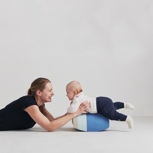 bObles - Friends Blue består af to kvart-cirkelformede tumlemøbler, der kan bruges hver for sig eller sammensættes. Vippefunktionerne stimulerer vestibulærsansen fra baby til barn, hvilket understøtter balanceudviklingen gennem forskellige legeperioder. Produktet er farvet i blå og beige nuancer.