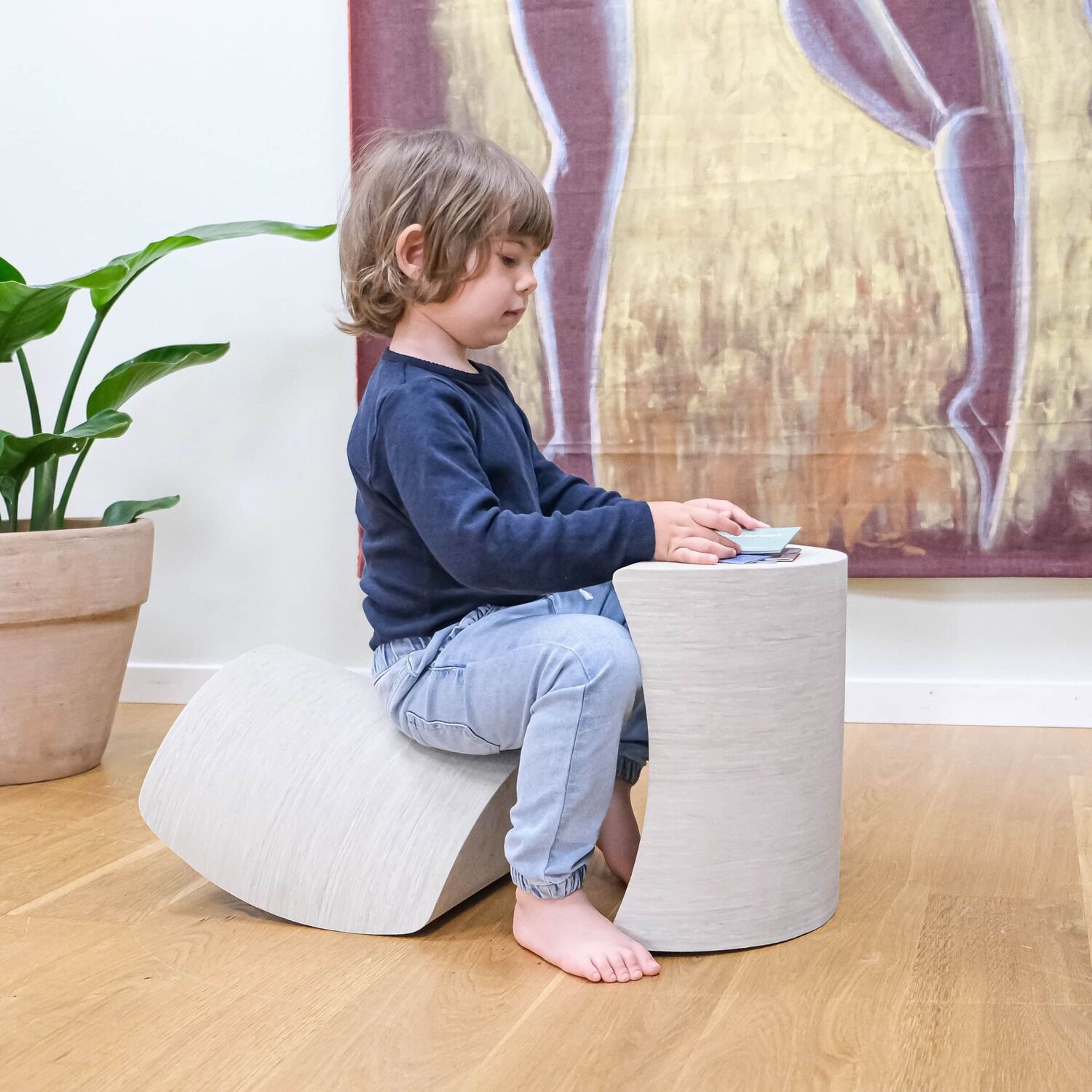 Friends Smoke består af to separate, buede dele, der kan kombineres til en cylinder eller bruges hver for sig. Designet giver fire forskellige vippefunktioner, som stimulerer dit barns motoriske udvikling gennem aktiv leg og balanceøvelser.