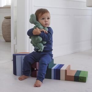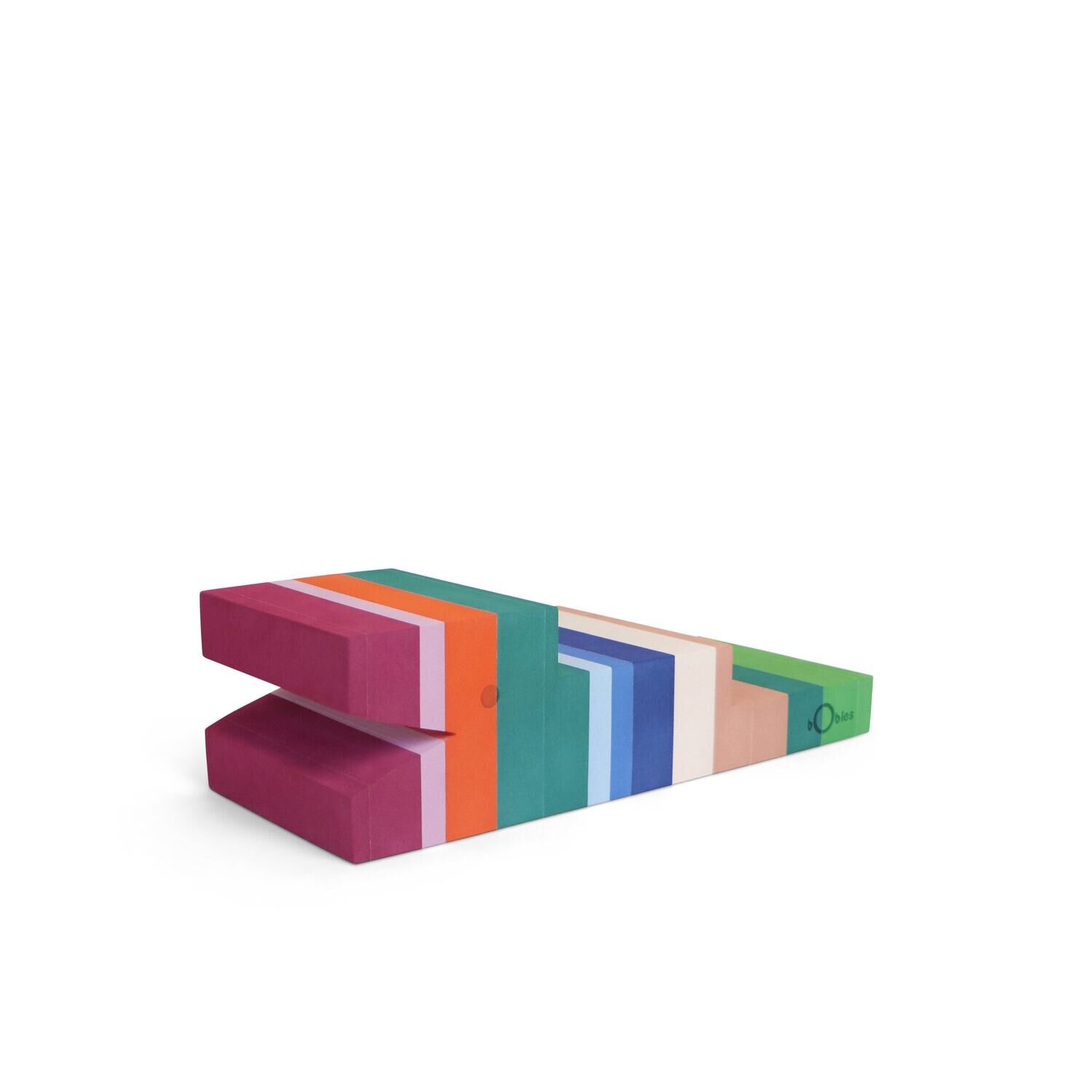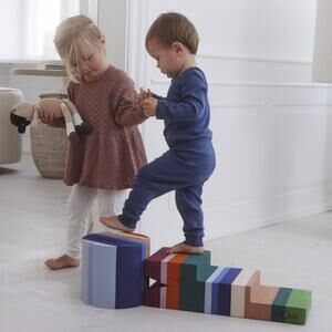 bObles Krokodille kommer i to størrelser, der begge invitere til leg og bevægelse. Baby kan ligge behageligt på maven over mellem Krokodilles skrå flade og styrke nakken eller senere hen bruge skråningen som en lille bilbane. Det større barn kan tage på en udfordrende gåtur op ad de smalle trappetrin og springe ud fra toppen - igen og igen! Har man to, kan man bygge bane ved at lægge dem i forlængelse af hinanden, enten som stabile trapper eller som vippende broer. Skab et børnevenligt tumlemøbel og læg de to krokodiller ovenpå hinanden så de danner en lille bænk. Stil krokodillerne på højkant, kan de også bruges som sjove cirkusstylter. bObles Krokodille M er et tumledyr i EVA-skum, der både styrker barnets balance og koordination, når barnet kravler, går eller står og vipper på krokodillen. Farverne i Mountain-serien er inspireret af naturens storslåede farvespil. Med striberne på tværs er der plads til ekstra mange farver, der gør tumledyret sanseligt og inspirerende for barnet at lege med. Samtidig er farverne, såvel som tumledyrene, tidløse og har lang levetid.