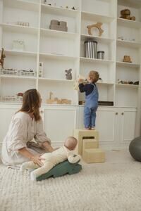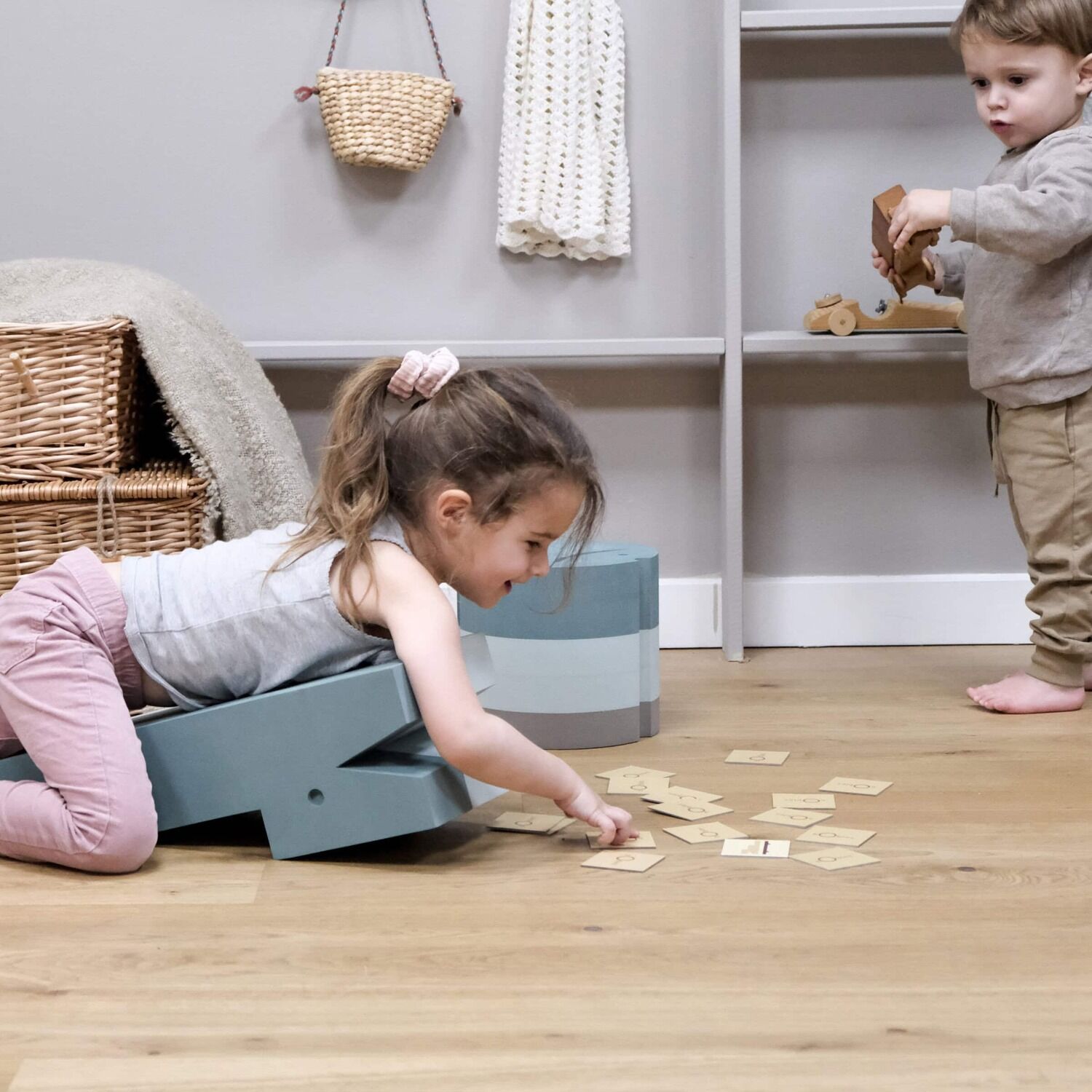 bObles krokodille M er et fantastisk tumlemøbel til børn i alle aldre, og med dets unikke størrelse og smukke farver vil den uden tvivl blive et hit på børneværelset. Der er næppe noget legetøj, der kan konkurrere med en bObles Krokodille, når det gælder balance, koordination og store grin. For den helt lille baby kan Krokodille vendes om på ryggen og bruges som sliske. Herfra kan mor og far nyde nærværet med deres lille ny, når baby ligger på ryggen og kigger op. Læg en bObles Kylling under Krokodille og pludselig har du den sjoveste baby-vippe. For de kravlende babyer er trinene på Krokodille den perfekte første trappe, hvor der også kan trænes faldrefleks. De sjove aktiviteter stopper dog ikke her. Trappen bliver kun endnu mere underholdende, når tumlingen er kommet op at gå. Sæt den for enden af sengen som hjælp til selv at komme op - det styrker barnets selvtillid at mestre den slags discipliner, ligesom bObles Krokodille pynter i ethvert børneværelse med sit ikoniske og sjove design. Og når barnet bliver rigtig modigt, kan to Krokodiller blive til stylter eller en lille bænk. De naturlige farver er omhyggeligt udvalgt, for at skabe rolige, sanselige og inspirerende omgivelser for barnet at lege i, samtidig med at farverne, såvel som tumlemøblerne er tidløse og kan holde til mere end én sæson.