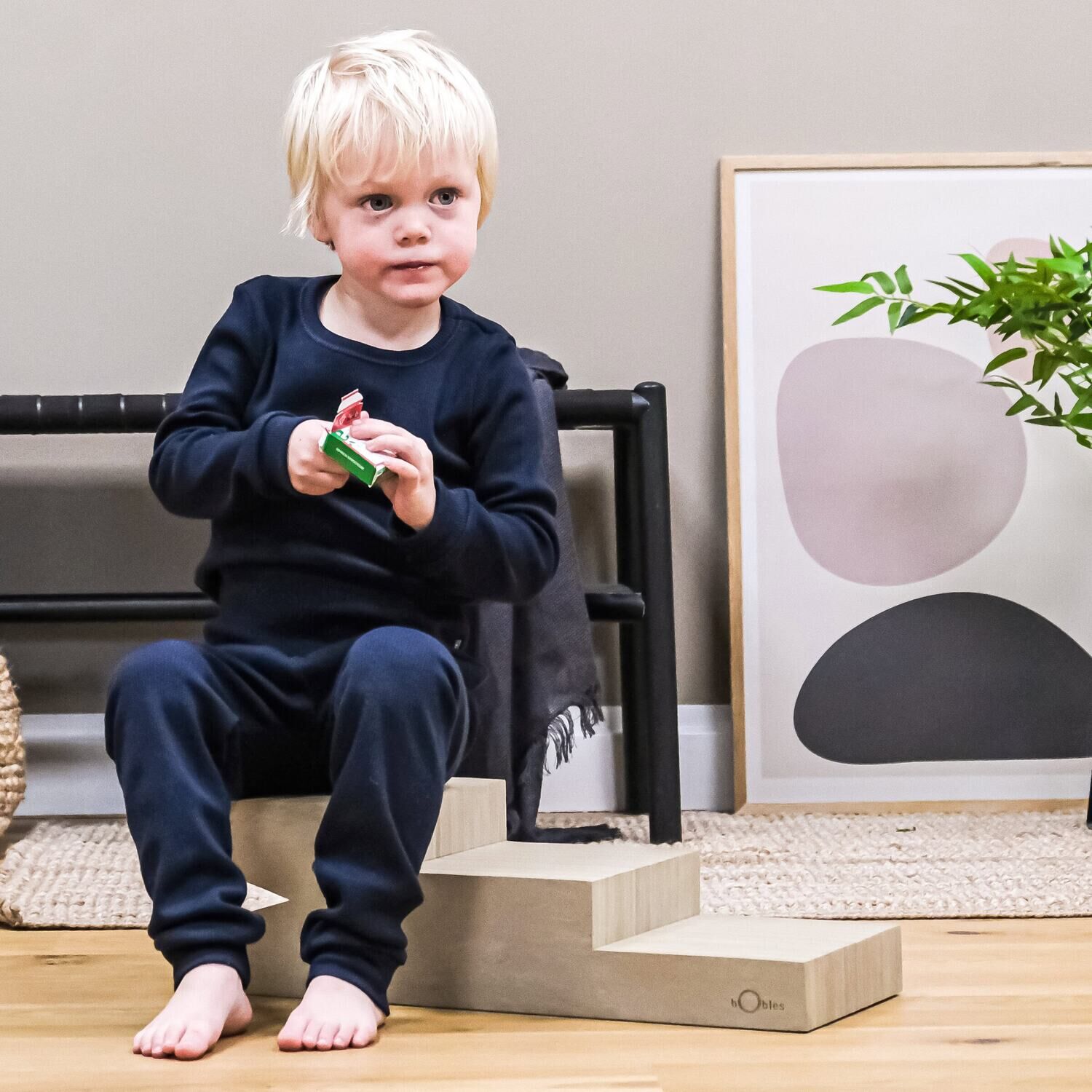Trinene giver kravlende babyer en første trappe at øve sig på, hvilket understøtter deres motoriske færdigheder. Det trappeformede design med flere niveauer gør det muligt for børn at kravle, stå og sidde sikkert. Denne funktion er særligt nyttig i den fase, hvor børn lærer at navigere mellem forskellige højder.