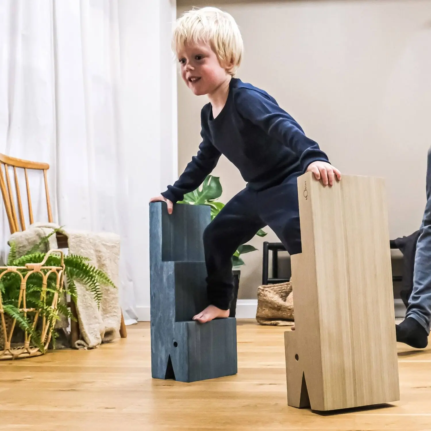 Multifunktionaliteten betyder, at produktet vokser med dit barn. Når barnet bliver ældre, kan blokken bruges som stylter til balancetræning eller som en lille bænk. Den unikke størrelse og de smukke farver gør den til et funktionelt møbel, der kan stables med andre blokke for at skabe nye legemuligheder.