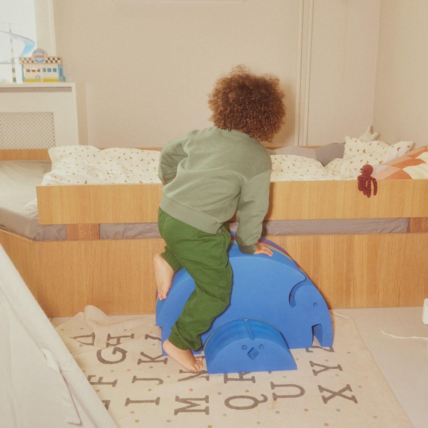 Kyllings buede overflade kan bruges som sliske, når baby skal styrke nakke og ryg. Den passer ind i maven på den store bObles Elefant, og sammen kan de bruges som en vippe, der styrker vestibulærsansen. Når barnet rammer tumlingealderen og begynder at sidde selv er Kylling fantastisk til at øve det kontrollerede vip. Tumlingen kan sidde på Kylling og vippe frem og tilbage eller fra side til side med begge fødder i gulvet. Når barnet er blevet sikker på benene kan bObles Kylling bruges til at vippe stående. Prøv også på kun et ben! Forældrene kan også bruge Kyllingen til at balancere på, f.eks. mens de laver mad eller ser TV. Balancen bør udfordres hele livet! Farverne i vores nye bObles Gym finder inspiration i den energi og bevægelsesfrihed børnene oplever i gymnastiksalen. Produkterne er designet til sjove og stimulerende aktiviteter, så forældre kan skabe en legende og aktiv atmosfære indendørs. Sæt energien fri i hjemmet med vores nye farvepalet for efterår/vinter 23/24. Lad aldrig et øjeblik med regn, vind eller begrænset plads sætte en stopper for din evne til at bevæge og udvikle dig. Med bObles starter eventyret i hjemmet. Press play på legen!