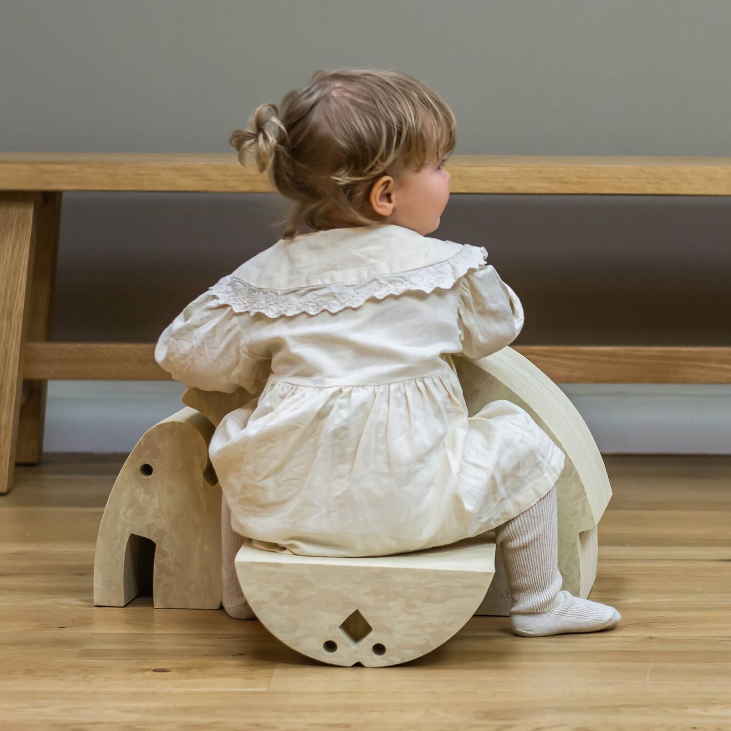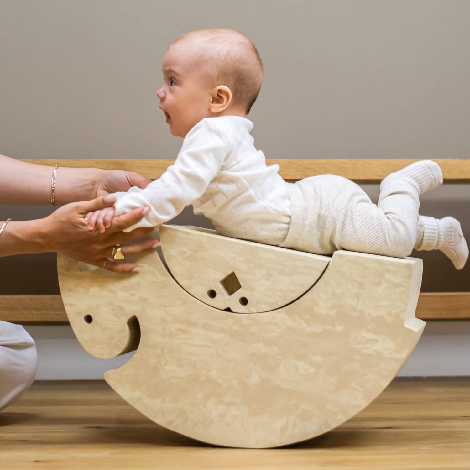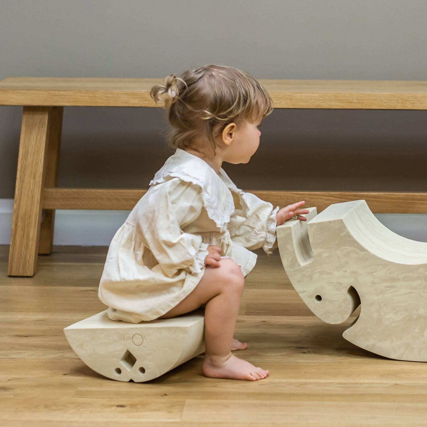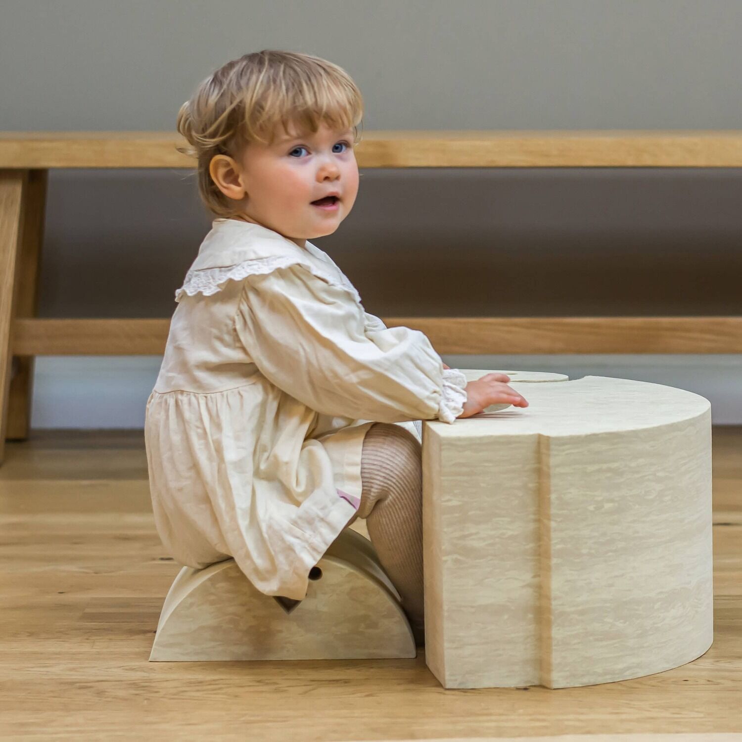 Alle børn (og deres forældre) bør starte livet med en bObles Kylling! Den bliver nemlig familiens bedste ven, når baby skal til at ligge på maven. Kyllings buede overfalde kan bruges som sliske, når baby skal styrke nakke og ryg. Den passer også ind i maven på den store bObles Elefant, som så kan bruges som vippe og styrke vestibulærsansen. En dejlig og rolig aktivitet med baby. Når barnet rammer tumlingealderen og er begyndt at sidde selv, er Kylling fantastisk til det kontrollerede vip. Tumlingen kan sidde på Kylling og vippe frem og tilbage samt fra side til side med begge fødder solidt plantet på gulvet. Og når barnet er blevet sikker på benene, kan bObles Kylling bruges til at vippe stående. Også på et ben. Psst… Det kan mor og far også, mens de laver mad eller ser TV. Vi bliver aldrig for gamle til at styrke balancen. bObles tumlemøbler i Marble Nature farver er en smuk og multifunktionel tilføjelse til dit hjem. Med inspiration fra naturens elementer, smelter de varme marmorfarver ind i indretningen og giver et både legende og afdæmpet udtryk til glæde for både børn og forældre. Ligesom bObles’ andre tumlemøbler, er Marble Nature-serien lavet i fast EVA-skum med en blød overlade, som inviterer til leg, fantasi og motorisk udfoldelse for baby, tumling og barn. Samtidig fungerer de fantastisk som interiør til hele hjemmet.
