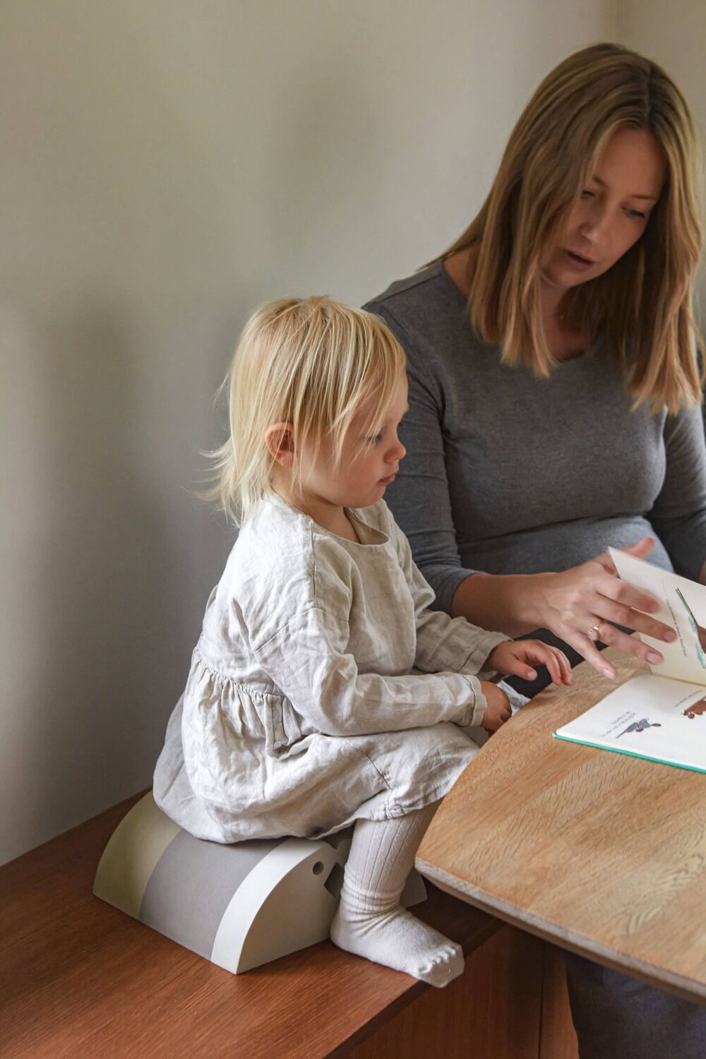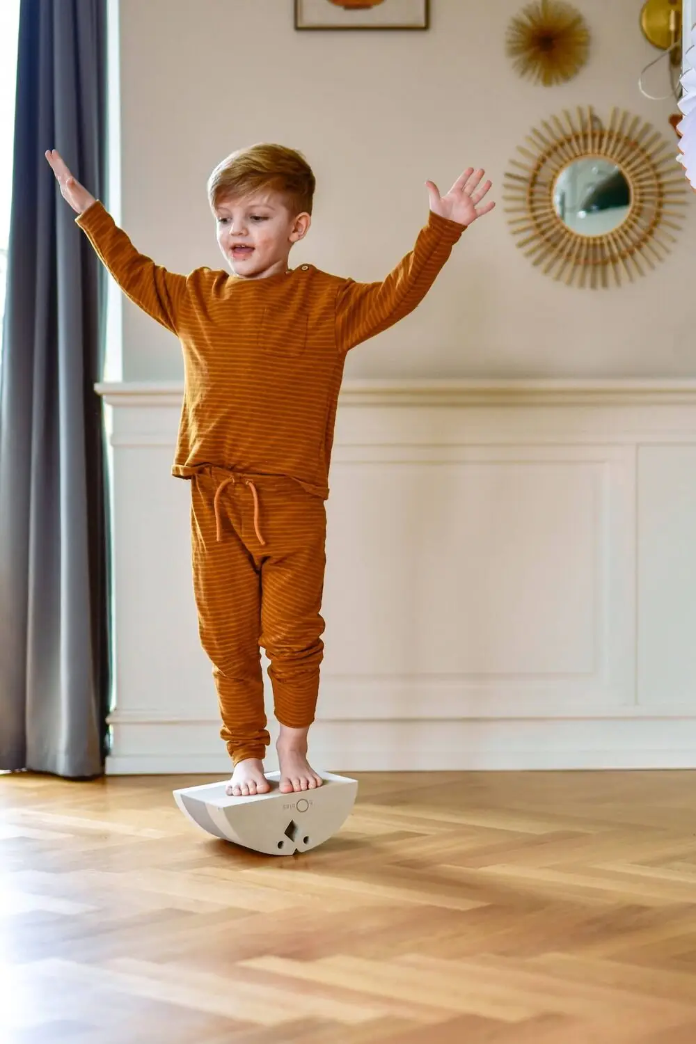 bObles Kylling styrker barnets motorik ved at tilbyde forskellige brugsmuligheder. Når dit barn bruger den som vippe, styrkes vestibulærsansen, som er afgørende for balance og rumlig orientering. Den buede overflade giver mulighed for nakke- og rygtræning, når barnet ligger på den.