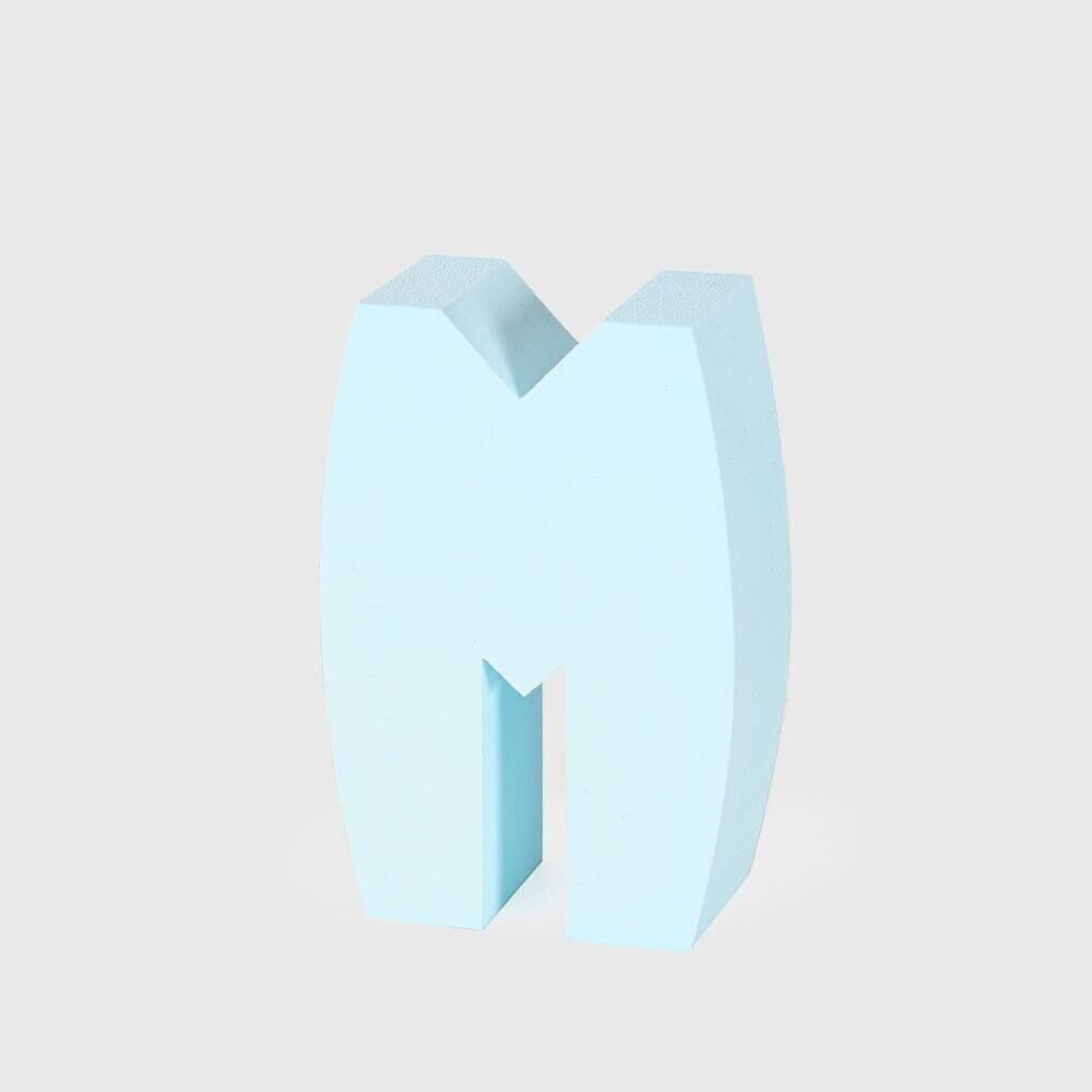 Dette tredimensionelle bogstav M i lys blå farve giver børn en håndgribelig måde at lære bogstaver på. Den glatte overflade og den solide form gør det let for små hænder at gribe fat i og udforske, mens farven passer naturligt ind i børneværelset.